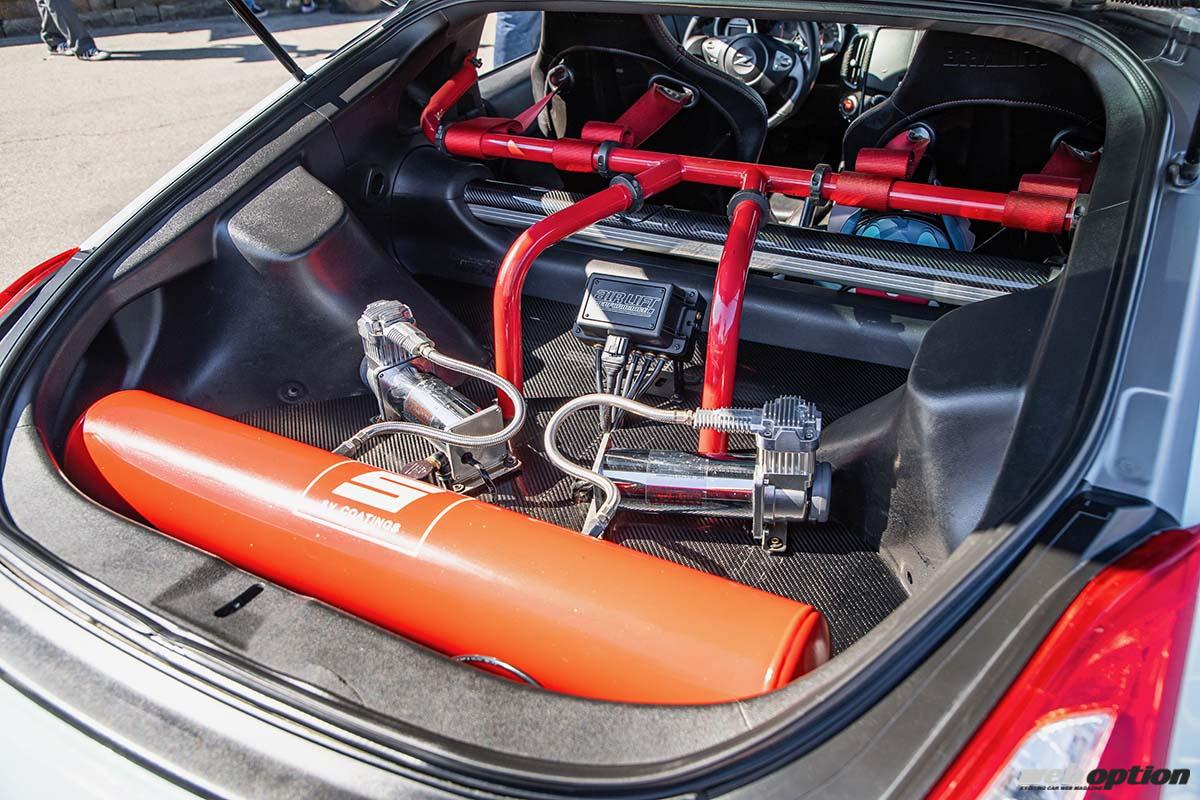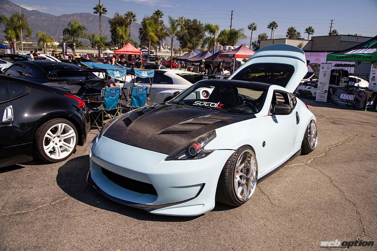 NISSFESTに参加しているオーナーズクラブで、おそらく最大規模と思われるのが地元サザンカリフォルニアを拠点にする「Socal Z(ソーキャルジィー)」。彼らにとってはエアサス、深リム、カーボンパーツが三種の神器となっており、こちらのZ34はその典型的なサンプルとも言える。