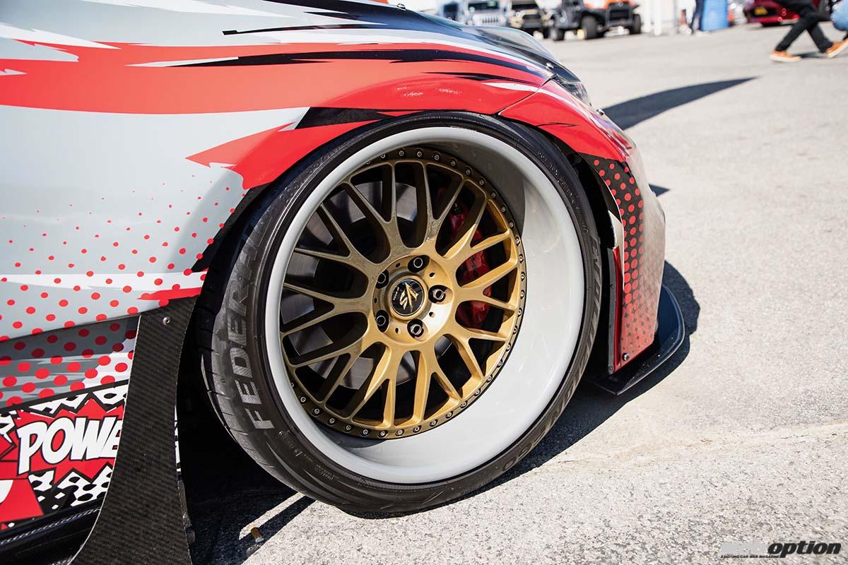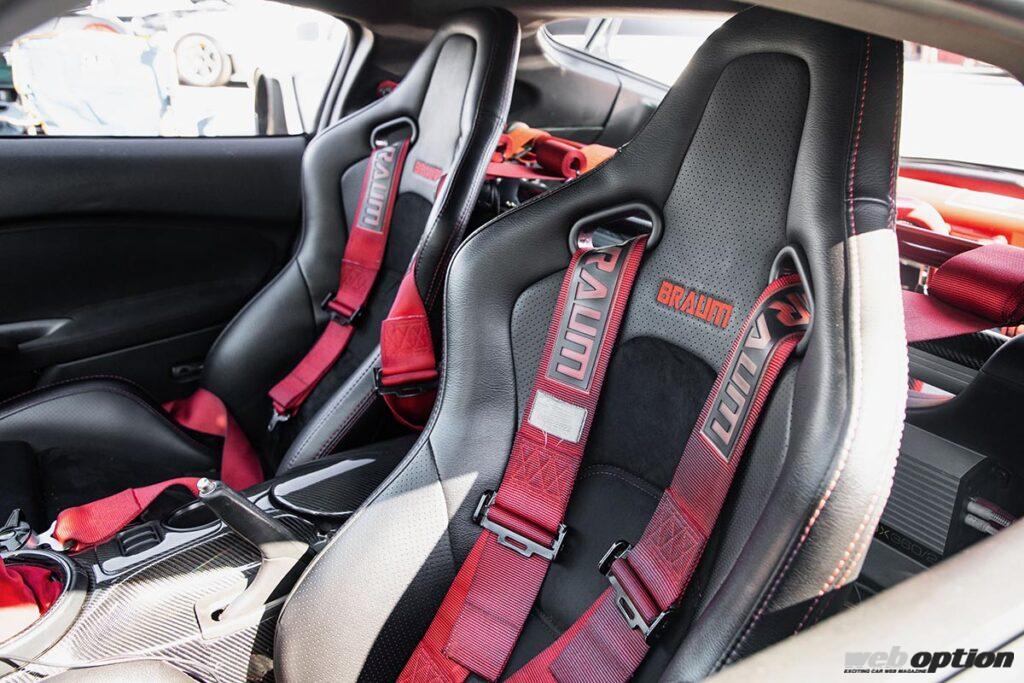 一方、外装にはHyper Hiveのワイドボディを纏い、超絶深いリバースリムのワークVS XXも装着。パフォーマンス系スタンスとでも表現すれば良いのだろうか、とてつもない存在感を放っている。