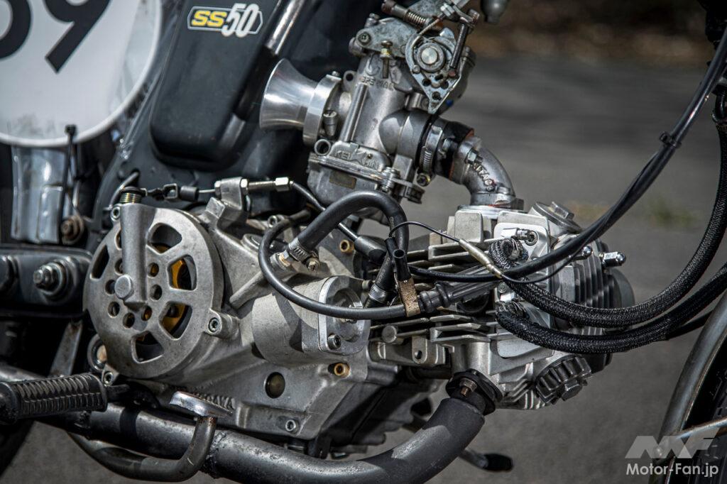日本最速を目指したSS50が96.861km/hを記録!【最高速チャレンジ2024】 MOTO CHAMP 最高速 CHALLENGE 2024 presented by KN KIKAKU この排気量でこんな最高速が叩き出せる! 2026.03.18 08:00 この記事の画像をもっと見る(全3枚) エクステリア関係はほぼオリジナル状態とし、SP武川製のクランクケースやクランク、クリッピングポイント製のシリンダーやピストンを採用。マフラーは独自のワンオフとし、キャブレターはCRφ26mm、なかじまやによるポート加工などで日本最速のSS50を目指す。 POWER TRAIN:HONDA MONKY DISPLACEMENT:106cc CHASSIS:HONDA SS50 TEAM:カーサービスなかじまやさん 【最高速チャレンジとは?】毎年恒例となったモーターファンフェスタのコンテンツのひとつとしてモトチャンプが開催。富士スピードウェイの1475mのメインストレートを用いての計測となる。【特別協賛:KN企画】 Date:April 21st 2024 Place:Fuji Speedway Racing Course Main Straight 開催カテゴリー ・2ストミッション車は49cc以上125cc以下。 ・4ストミッション車は49cc以上250ccまで。 ・スクーターは排気量制限無し。 いずれも改造変更自由。 オリジナルを重んじた外観により、ビンテージレーサーの味わい深さを醸し出す。 オリジナルの前後サスペンションやスポークホイールがレトロ感を演出。 パワートレインは抜かりなく手が入ったパワフル仕様となっている。 ※この記事は月刊モトチャンプ2024年7月号のものです。 バイクカスタムの関連記事
