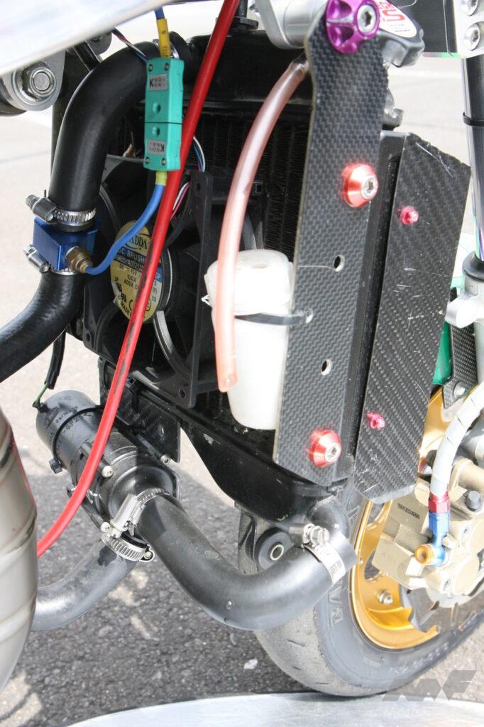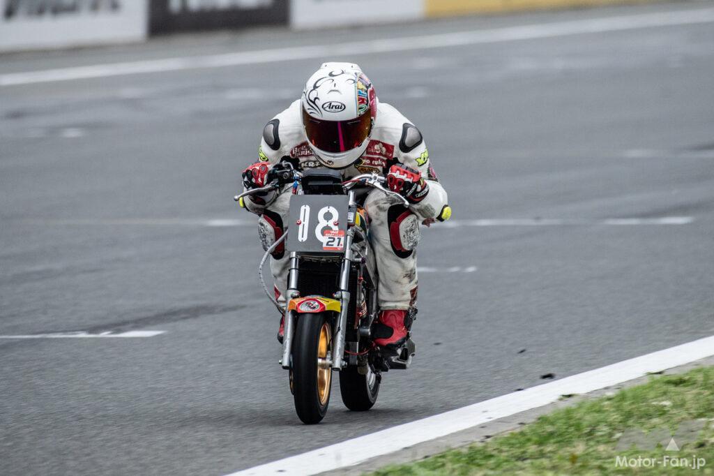 110ccのスーパースクーターで135.508km/hを記録! MOTO CHAMP 最高速 CHALLENGE 2024 presented by KN KIKAKU この排気量でこんな最高速が叩き出せる! 2026.03.15 11:00 この記事の画像をもっと見る(全3枚) 1980年代に日本全国で大人気だった、スクーターをフルチューンしたカテゴリー用の車両。当時はキタコやデイトナなどのパーツメーカーも本気で参入しており、車両はスーパースクーター(通称スパスク)と呼ばれていた。それを現在も進化させ続け、レースに参戦しているのがこの車両だ。ベリアルサービス製水冷ヘッドや当時を思い起こさせるワンオフのウインドジャマーズ製チタンチャンバー。前後の10インチアルミホイールなど、小径タイヤでショートホイールベースながら見事な記録を達成した。 POWER TRAIN:YAMAHA JOG90 DISPLACEMENT:110cc CHASSIS:ONE OFF ALUMINUM FRAME TEAM:Beehouse&CCDwithスーパースクーターさん 【最高速チャレンジとは?】毎年恒例となったモーターファンフェスタのコンテンツのひとつとしてモトチャンプが開催。富士スピードウェイの1475mのメインストレートを用いての計測となる。【特別協賛:KN企画】 Date:April 21st 2024 Place:Fuji Speedway Racing Course Main Straight 開催カテゴリー ・2ストミッション車は49cc以上125cc以下。 ・4ストミッション車は49cc以上250ccまで。 ・スクーターは排気量制限無し。 いずれも改造変更自由。 最高速アタックはカウルレス車両には厳しいところだが、それでも2ストスクーターの快音を響かせていた。 タンクはFRP製のカバーが装備されており、シートもFRP製でミクニ製となる。フロントフォークはNSR50用だ。 TZR125用のラジエターには、電動式のウォーターポンプやクーリングファンも装備される。 ※この記事は月刊モトチャンプ2024年7月号のものです。 バイクカスタムの関連記事
