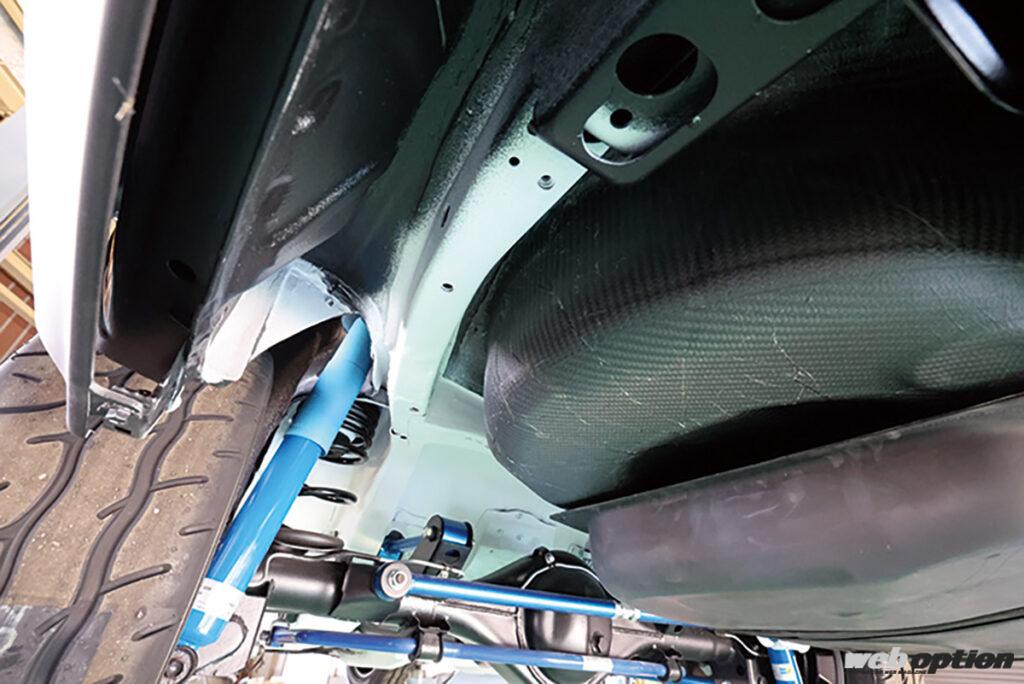 こちらはボディのリフレッシュを進めているハチロク。フロアやリヤ回りの状態がかなり悪く、まんさく自動車レストア.comの鋼板パーツや、Workshop匠のドライカーボンパーツを導入し復活させるという。