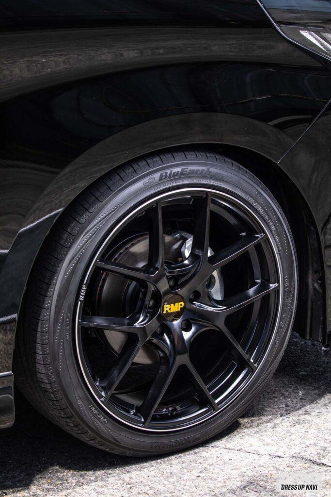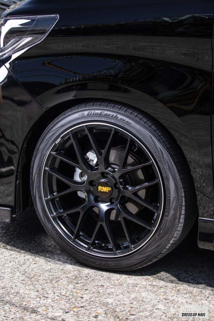 ベースとなるのは奥深い艶感が魅力なセミグロスブラック。引き締まった印象がこの黒で強まり、しかもほのかな艶感で色気も醸す。プレミアム感を高めるのは、リム外周をぐるりと走るダイヤモンドカットのライン。タイヤとの境界線がより明確になり、視覚的な大口径感が強まるのもポイント。そのライン上にさり気なく描かれるマシニングロゴも、優越を感じる要素だ