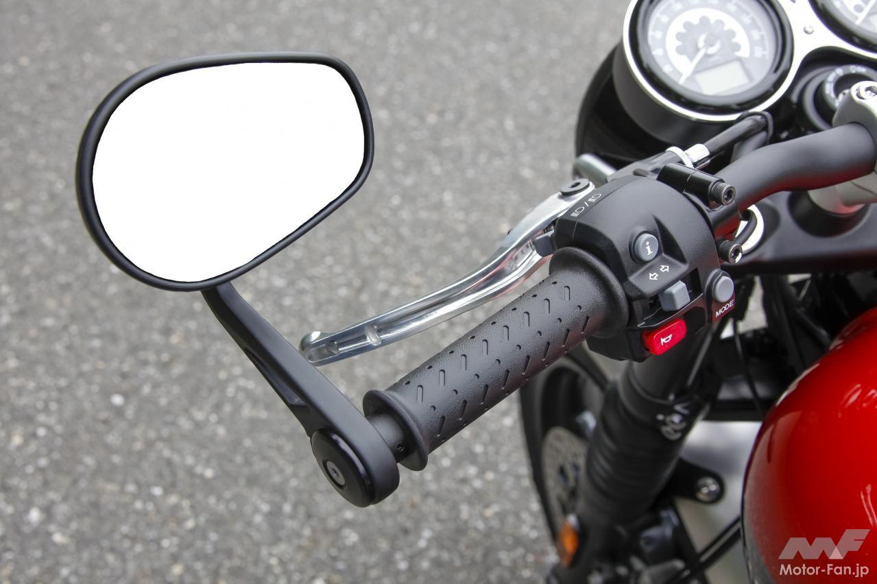 楕円ボックス断面形状のアルミスイングアームが採用されている点、ブレンボのダブルディスクブレーキや同じく調節式ブレーキレバー。燃料キャップもモンツァ風と呼ばれるこだわりの方式が採用され、バーエンドミラーの装備も特徴的。随所に散りばめられたアルミパーツや化粧カバーも所有欲を満たすファクターとしてセンスの良い上質な仕上がりを披露している。