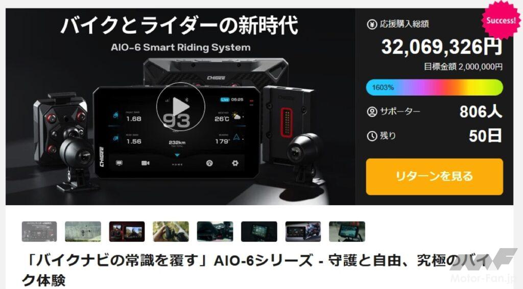 バイクナビの常識を覆す「AIO-6シリーズ」登場 Makuakeで3,000万円突破