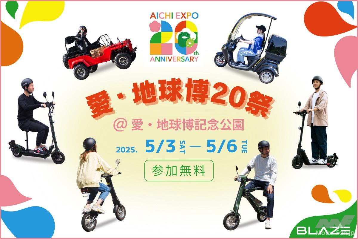株式会社ブレイズは、2025年5月3日から6日まで愛知県長久手市の愛・地球博記念公園で開催される「愛・地球博20祭」にて、電動モビリティの試乗体験会を実施する。同社のブランドコンセプト「LIFE EV」のもと、特定小型原動機付自転車に対応したスマートEVやキックボードEVなど、免許不要で試乗可能なモデルを含む7種類の電動モビリティが用意される。試乗体験会は公園内の愛・地球博記念館前で行われ、入場料は無料。ブレイズは、環境に配慮した移動手段として電動モビリティの普及を目指し、生活やレジャー、ビジネスシーンでの活用を提案している。