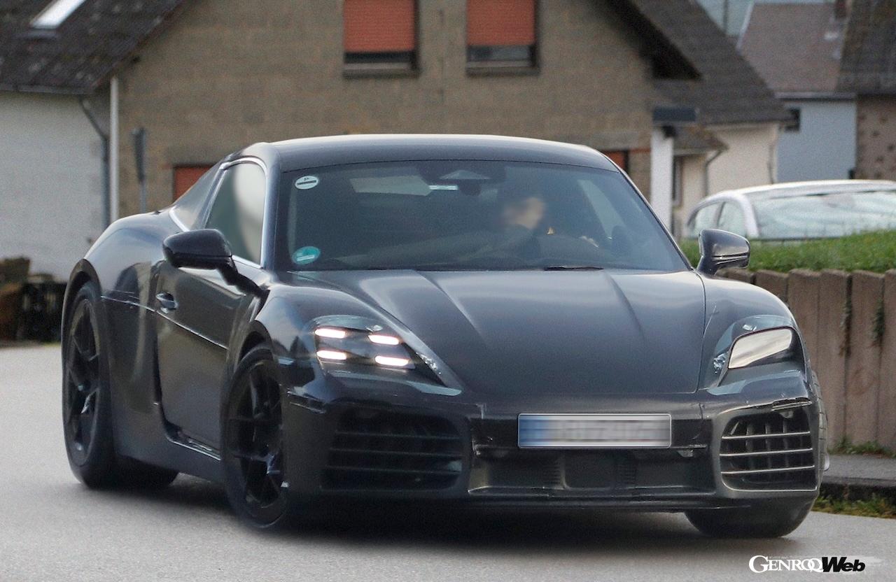 フロントエンドを見ると、バンパー両側のエアインテークに水平バーが装備されているが、これはダミーだと思われる。その奥には垂直のルーバーが見えており、新型「911 GTS ハイブリッド」のアクティブフラップによく似ている。
