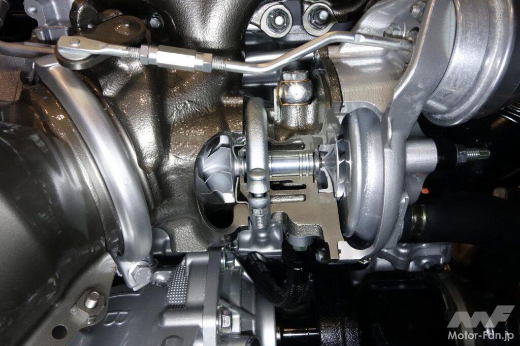 G16E-GTSはだから、その回転域で実力をいかんなく発揮する設計になっている。初号機が載った先行試作車をテストドライブしたモリゾウ氏(豊田章男社長)は、クルマが「言うことを聞かない」とダメを出した。そのダメ出しに対して開発陣は、ターボチャージャーの軸受にボールベアリングを採用してフリクションを低減し、コンプレッサーホイールのチップクリアランスを詰めて効率を高めるため、樹脂系材料のアブレダブルシールを採用した。さらに、モデルベース開発を駆使してウェイストゲートの制御を最適化し、レスポンスを向上させた。