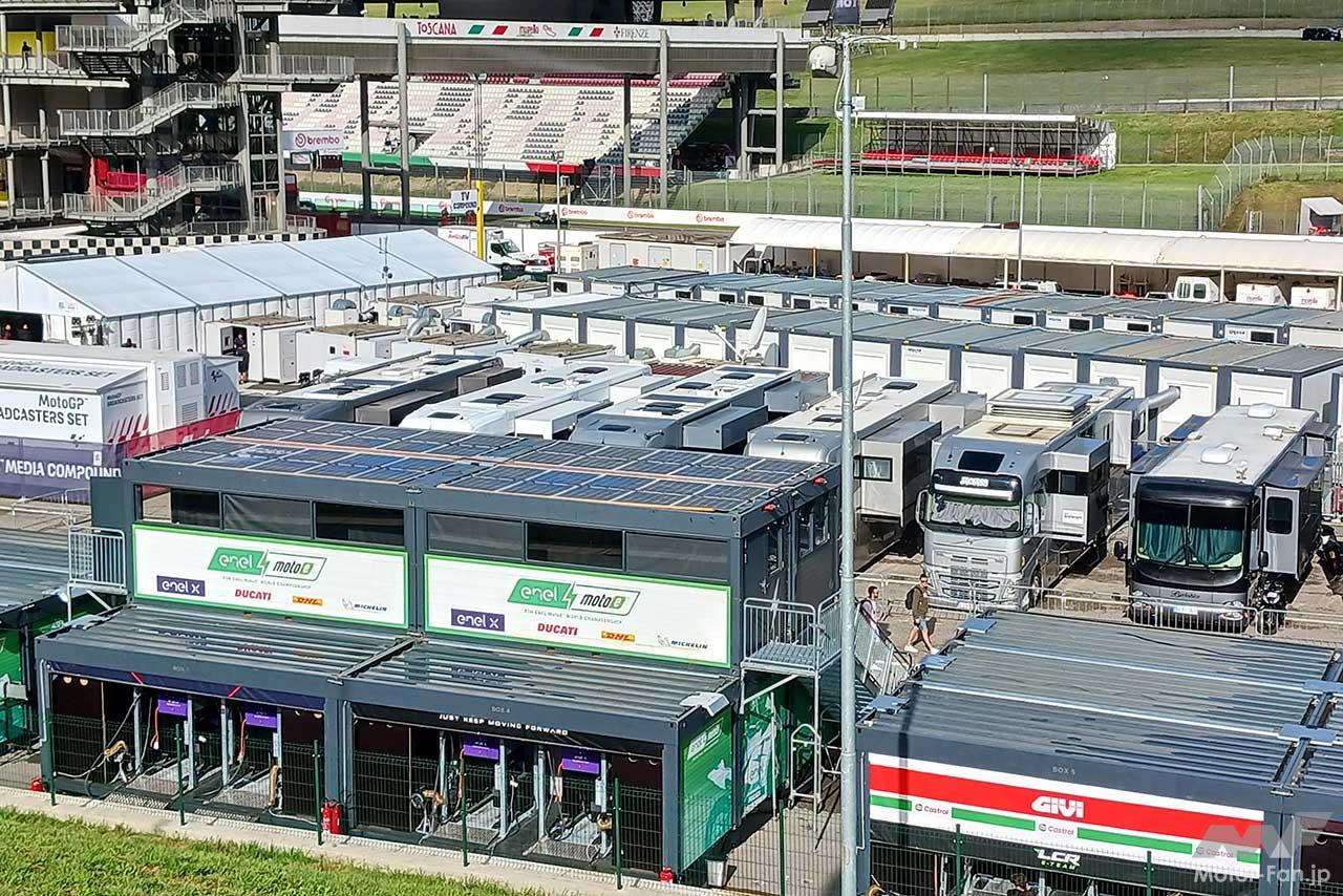 なお、2019年からのタイトルスポンサーであった、イタリアの電力、エネルギー会社のEnelが2024年シーズンをもって撤退した。これによって、2025年シーズンにおけるMotoEの大きな変化の一つは、充電設備になるだろう。Enelは、MotoEマシンのパドックにおける充電はもちろんのこと、グリッド上でのポータブル充電器によるマシンの充電に貢献してきたからだ。