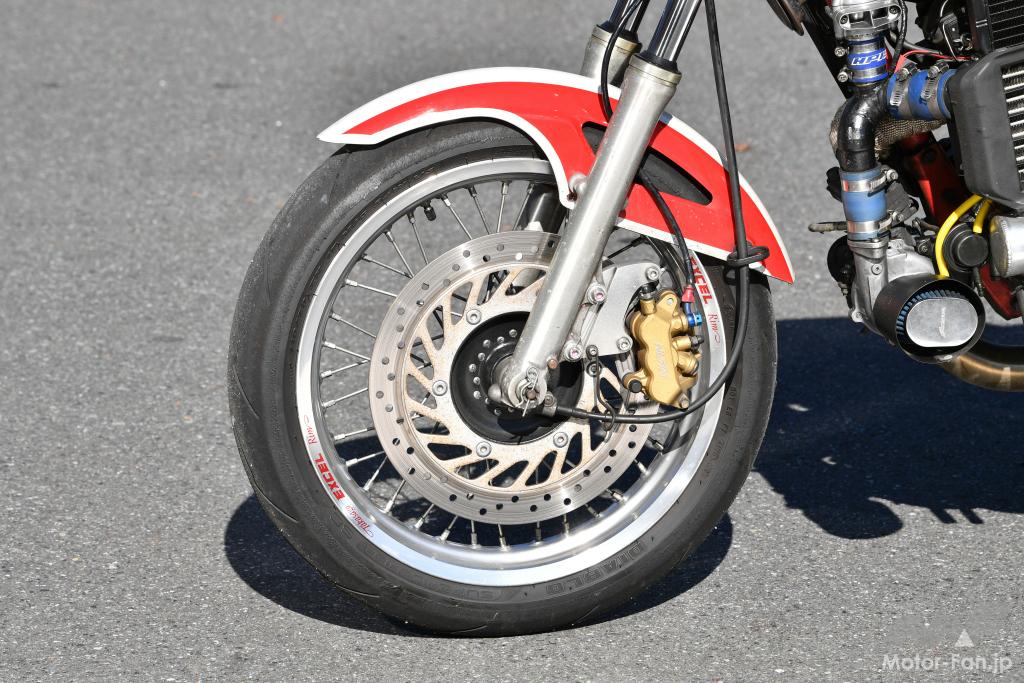 「タイヤサイズを変更した理由は、選択肢を増やすためです。細身の前後18インチバイアスにも捨て難い魅力はありますが、1990年代中盤以降の主力は前後17インチラジアルですからね。私は自分が慣れ親しんだ車両で、最新タイヤの美点を常に感じていたいんです」