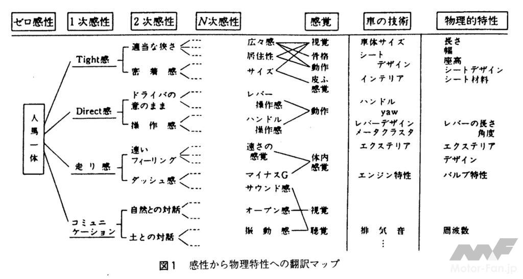 また、使う人の感性を重視した商品開発=感性工学を世界で初めて提唱したのは、広島大学出身の長町三生氏だとされている。マツダ社内では、ロータリーエンジンの開発者として知られる山本健一氏が自動車における感性工学の重要性を1980年代半ばから訴えてきた。