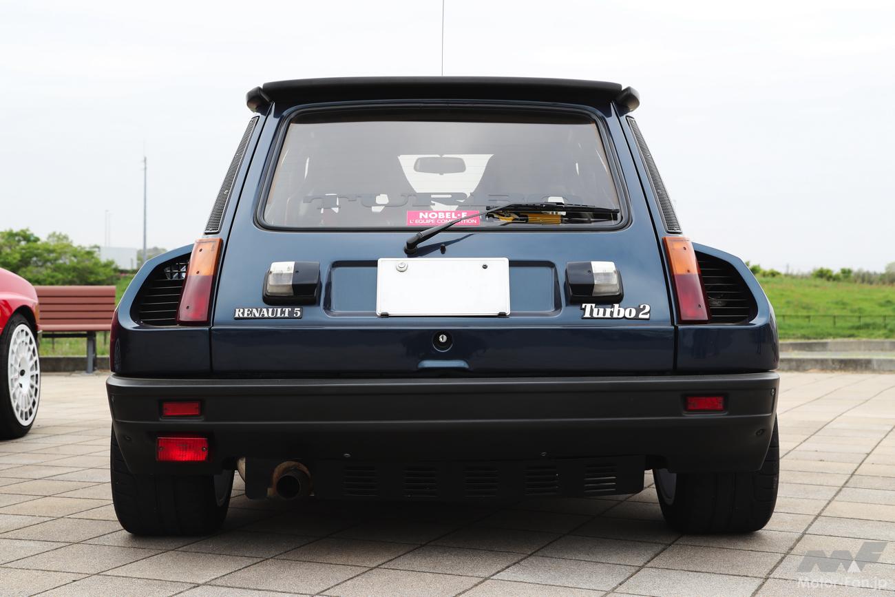 元々はFFの小さなコンパクトカーだったルノー5(サンク)をベースに、WRCグループ4のホモロゲーション獲得を目的として、5アルピーヌ用の1400ccターボユニットをドライブトレーンごと前後逆にして後席部分に搭載してミッドシップ化したのが、1980年に発売された5ターボだ。さらに、WRCのレギュレーションが1982年から改められたことを受けて、1983年には新規定のグループBに対応した5ターボIIが発売された。