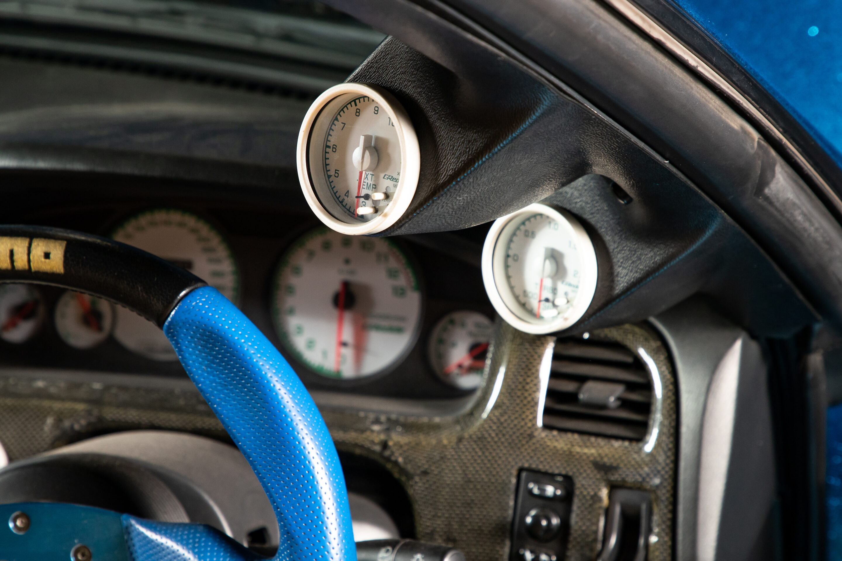 センターコンソールにはブースト制御用のPRofec-B、追加インジェクターをコントロールするRebic IVを装備。