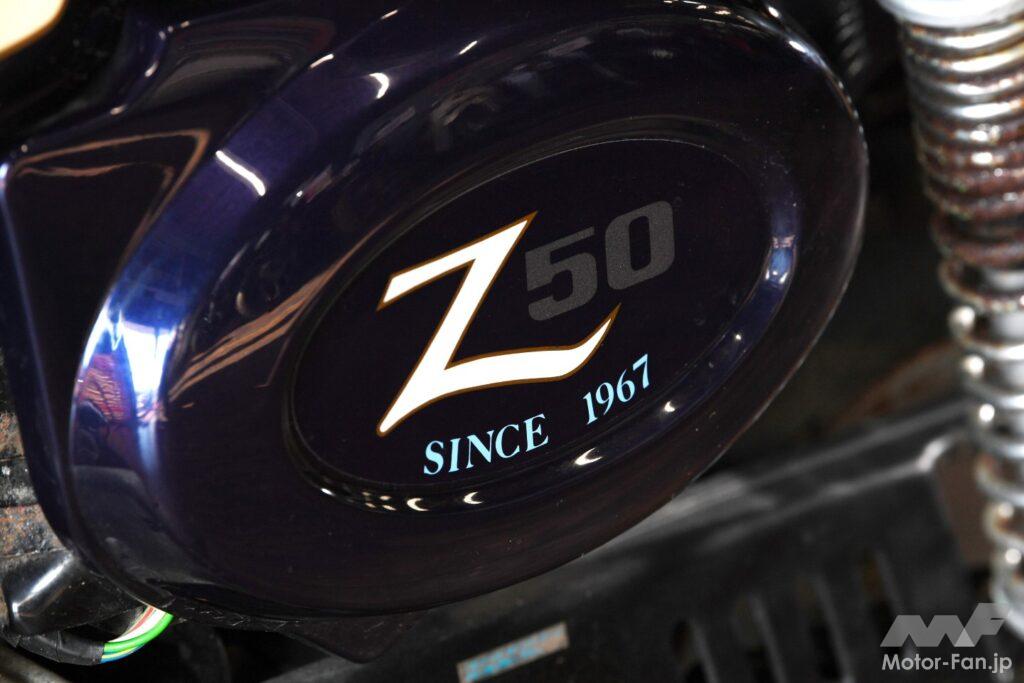 1974年から発売が始まったZ50Jは、リヤショック、リヤキャリア、ブロックパターンタイヤなどを新規採用することで、以後のモンキーのスタイルを確立。ちなみに、特徴的な折り畳み式ハンドルは1967年型からで、ティアドロップタンクとサドル型シートは1978年型から。