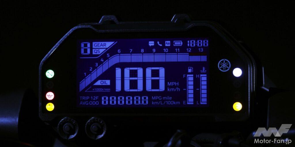 新型LCDメーターは、ヤマハの専用アプリ「YAMAHA Motorcycle Connect(Y-Connect)」に対応。これにより、スマートフォンとの連携が可能となり、車両情報の確認や通知機能など、利便性が向上している。さらに、USB Type-A端子対応ソケットを装備し、スマートフォンの充電などにも対応。