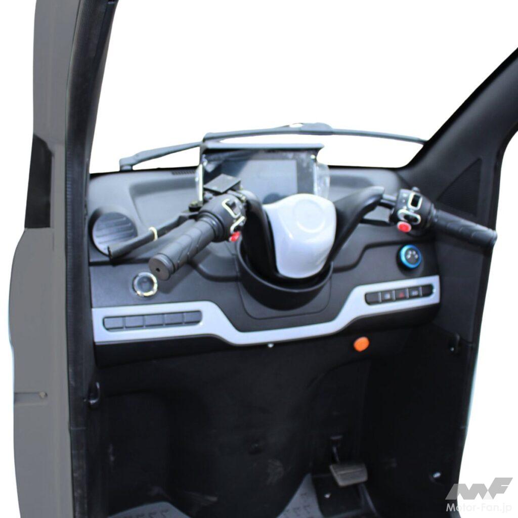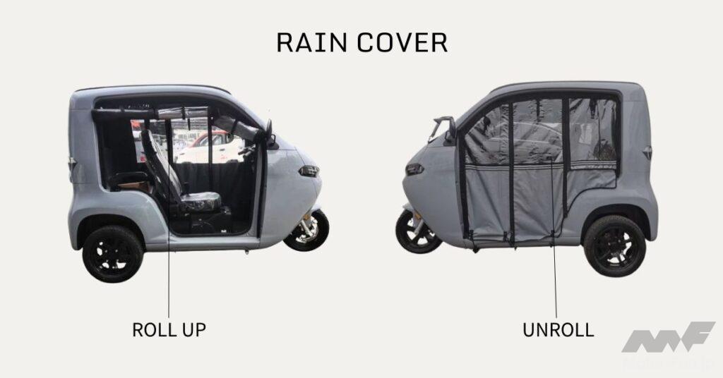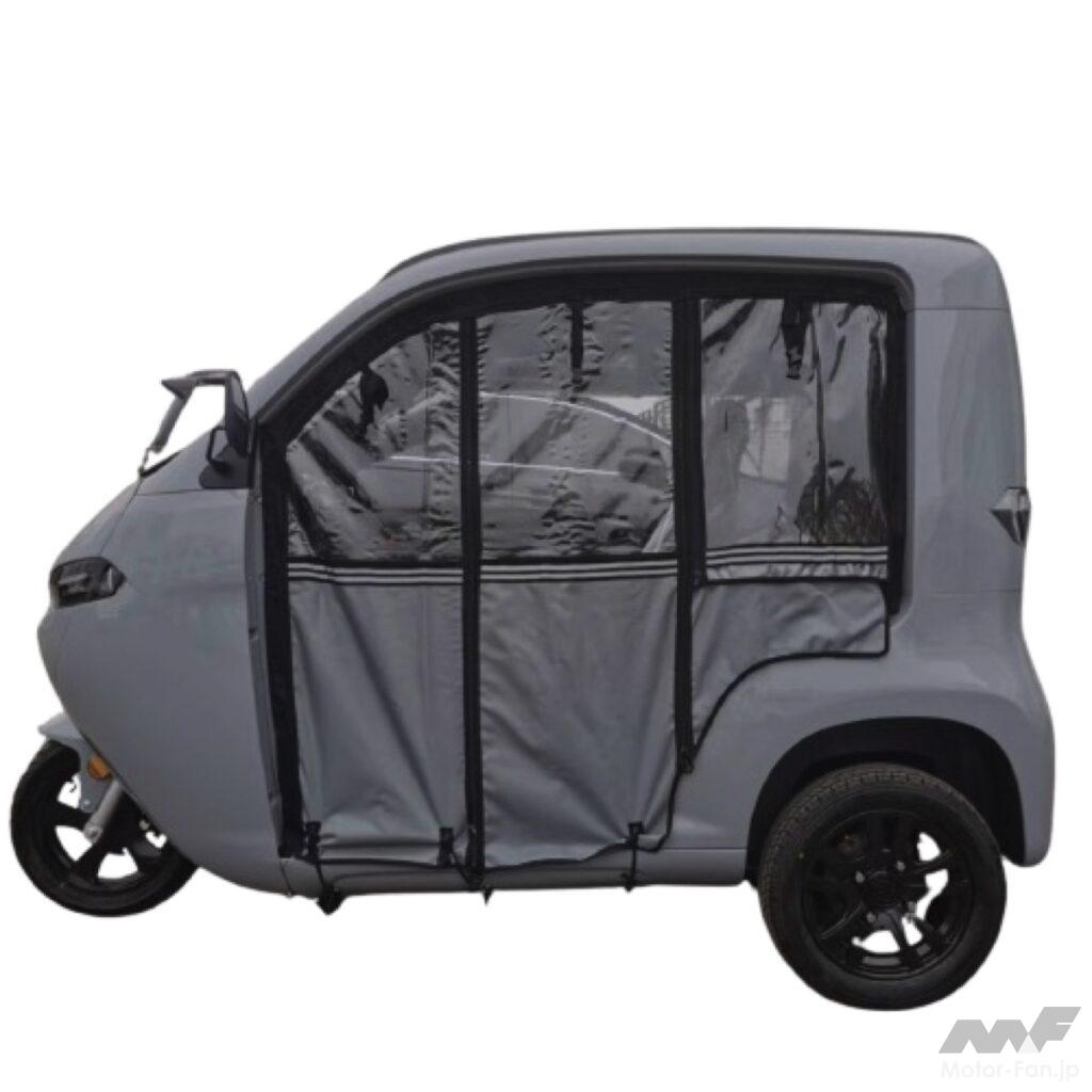 FAVICLEは、LEDヘッドライト、ワイパー、サイドミラー、バックカメラ、リアフォグランプ、温風ヒーター、USBポート、大型液晶ディスプレイ、収納ポケットなど、充実した装備を備えている。また、別売りオプションの専用レインカバーを取り付けることで、雨風を防ぎ、快適な移動をサポートする。