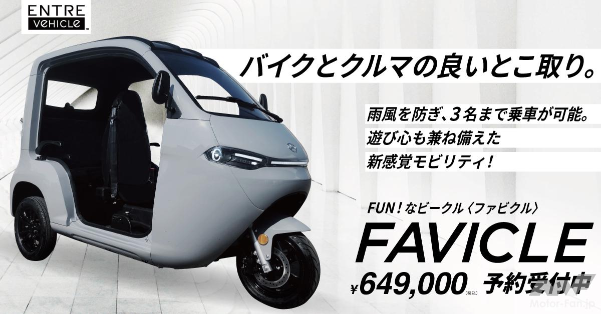 株式会社アントレックス(東京都新宿区)は、電動トゥクトゥク「FAVICLE(ファビクル)」の予約受付を開始した。FAVICLEは、リチウムイオンバッテリーモデル(85万円・税込)とLeadバッテリーモデル(64万9,000円・税込)の2種類を展開。オプションの専用レインカバーは3万3,000円(税込)で提供される。7月入荷予定で、現在予約受付中。試乗車も用意される予定で、実際の乗り心地を体感できる機会が設けられる。