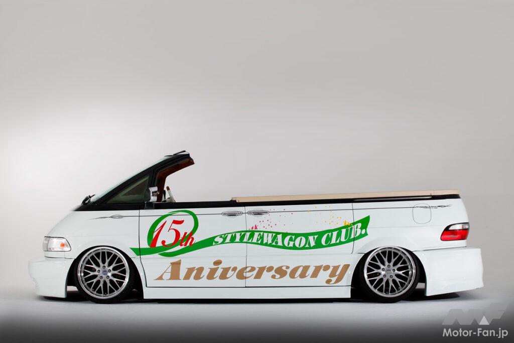 “天才タマゴ”の異名を持つTCRエスティマを、まさかのオープン化。イベント仕様として誕生し、『スタイルワゴンクラブ』の15周年記念ラッピングをまとった1台は、強烈なインパクトを残した。オーナーと仲間が語る、その魅力とは。