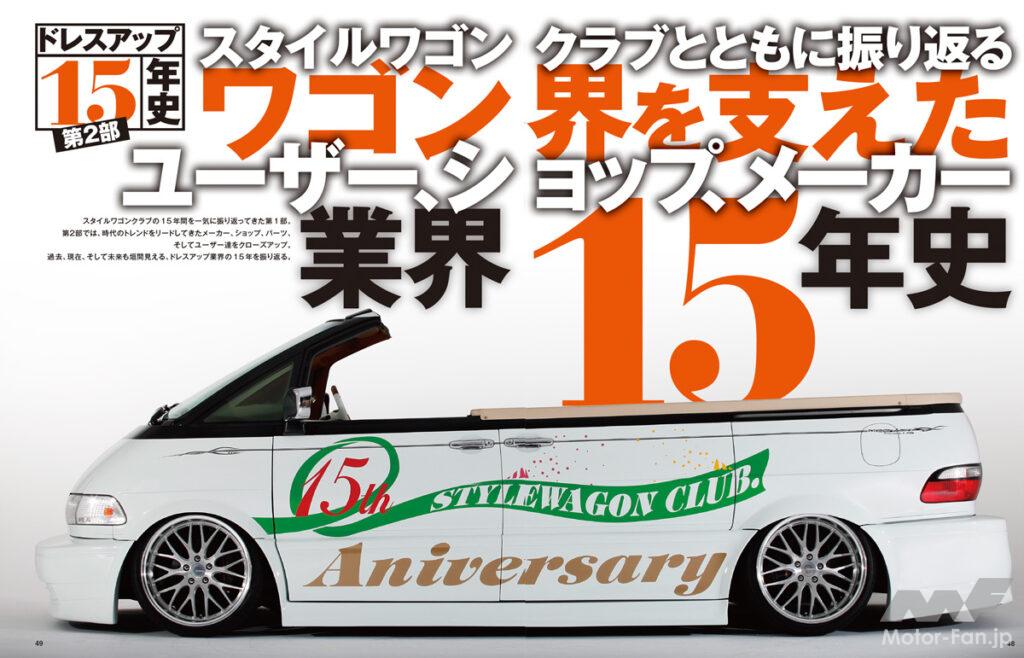 この車両はイベント仕様として製作され、2012年の東京オートサロンで披露。さらに「スタイルワゴンクラブ」15周年を記念したラッピングが施され、特別な1台として仕上げられている。ホワイトにリペイントされたボディに、アニバーサリーロゴが大胆に描かれたその姿は、まさに“魅せるためのエスティマ”だ。