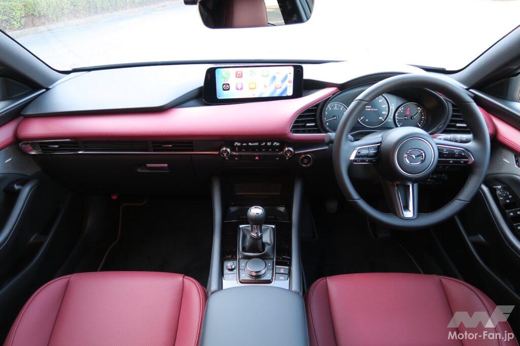SKYACTIV-Xは運転状況やドライバーの気分によってランダムに変動する要求に応えて火花点火制御圧縮着火(その燃焼方式をSPCCIと呼んでいる)を実現するため、通常のガソリンエンジン(例えばSKYACTIV-G)よりも高い製造精度で生産されている。そのおかげもあって低回転から高回転まできれいに回る。ごく低回転から(力強いとはまで言わないまでも)充分な力を出してくれるし、アクセルペダルを踏み増すとすぐさまドライバーの要求に見合った力を上乗せしてくれる。その反応の良さが気持ち良さにつながる。