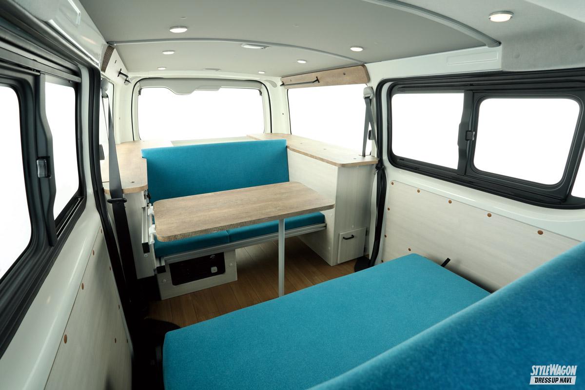 もうひとつのリトリートパッケージは6人乗りで、乗る、寝る、くつろぐを満喫できる自分だけの動く隠れ家的な仕様。アウトドアやキャンプなど、アクティブな毎日を楽しむに最適だ。