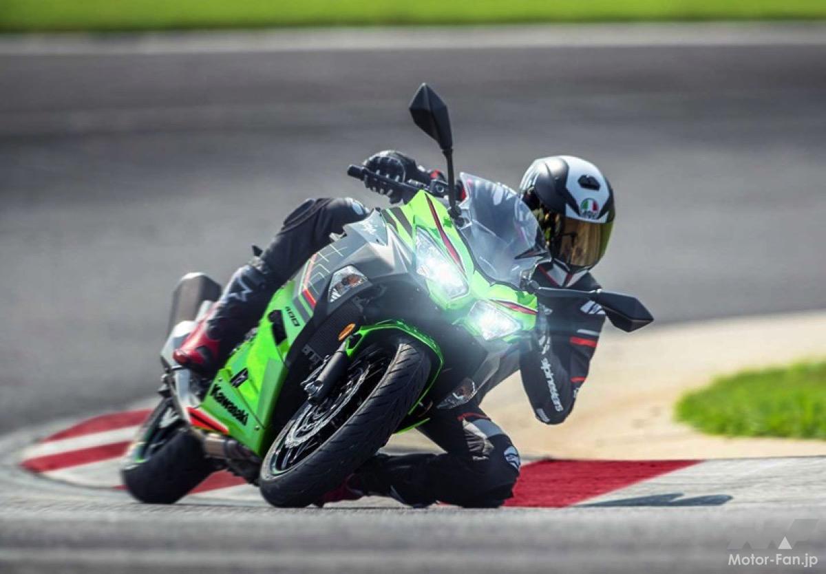 Ninja 400は、398cm³の水冷並列2気筒エンジンを搭載し、低中速域からの力強いトルクとスムーズな吹け上がりを実現している。このエンジン特性により、ビギナーからベテランまで幅広いライダーにとって扱いやすいモデルとなっている。また、軽量なトレリスフレームを採用することで、優れた安定性と高い操作性を実現し、俊敏なハンドリング性能を発揮する。これらの特性が、スーパースポーツ「Ninja」の名にふさわしい刺激的な乗り味を提供している。