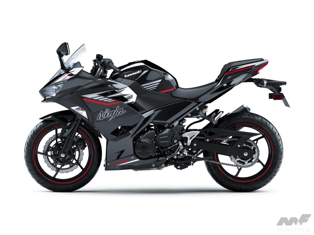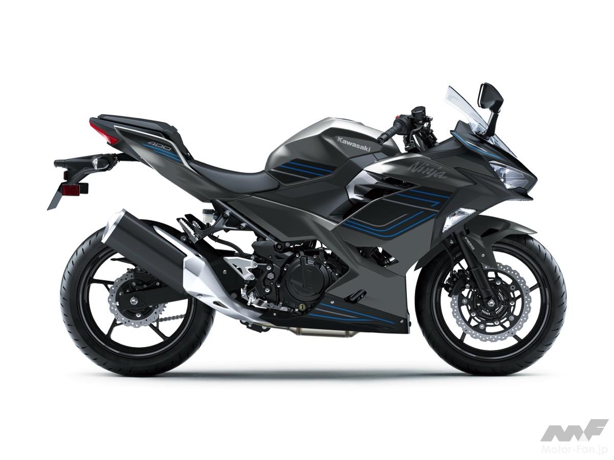 今回のモデルでは、カラーリングとグラフィックの変更が施され、新たに「メタリックマットグラフェンスチールグレー×メタリックフラットスパークブラック」と「メタリックスパークブラック×メタリックマグネティックダークグレー」の2色がラインナップに加わった。これにより、Ninja 400のアグレッシブなスタイリングがさらに際立ち、都市部でも存在感を放つデザインとなっている。