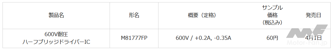 ※7 三菱電機600V耐圧ハーフブリッジドライバーIC「M81776FP」