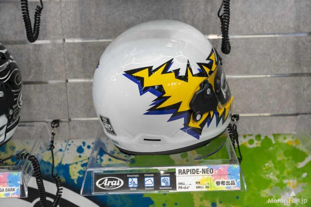 同じRAPIDE-NEOで展示されていた白×黄のグラフィックモデルは参考出品。大胆に配置されたイエローと、稲妻のように走るエッジの効いたラインが特徴で、従来のクラシック路線とは一線を画すデザインだ。ストリートカルチャーを強く意識した表現で、アライがより踏み込んだグラフィックに挑戦していることが伝わってくる。参考出品という立ち位置からも、この方向性を市場に問いかけている段階だと言える。