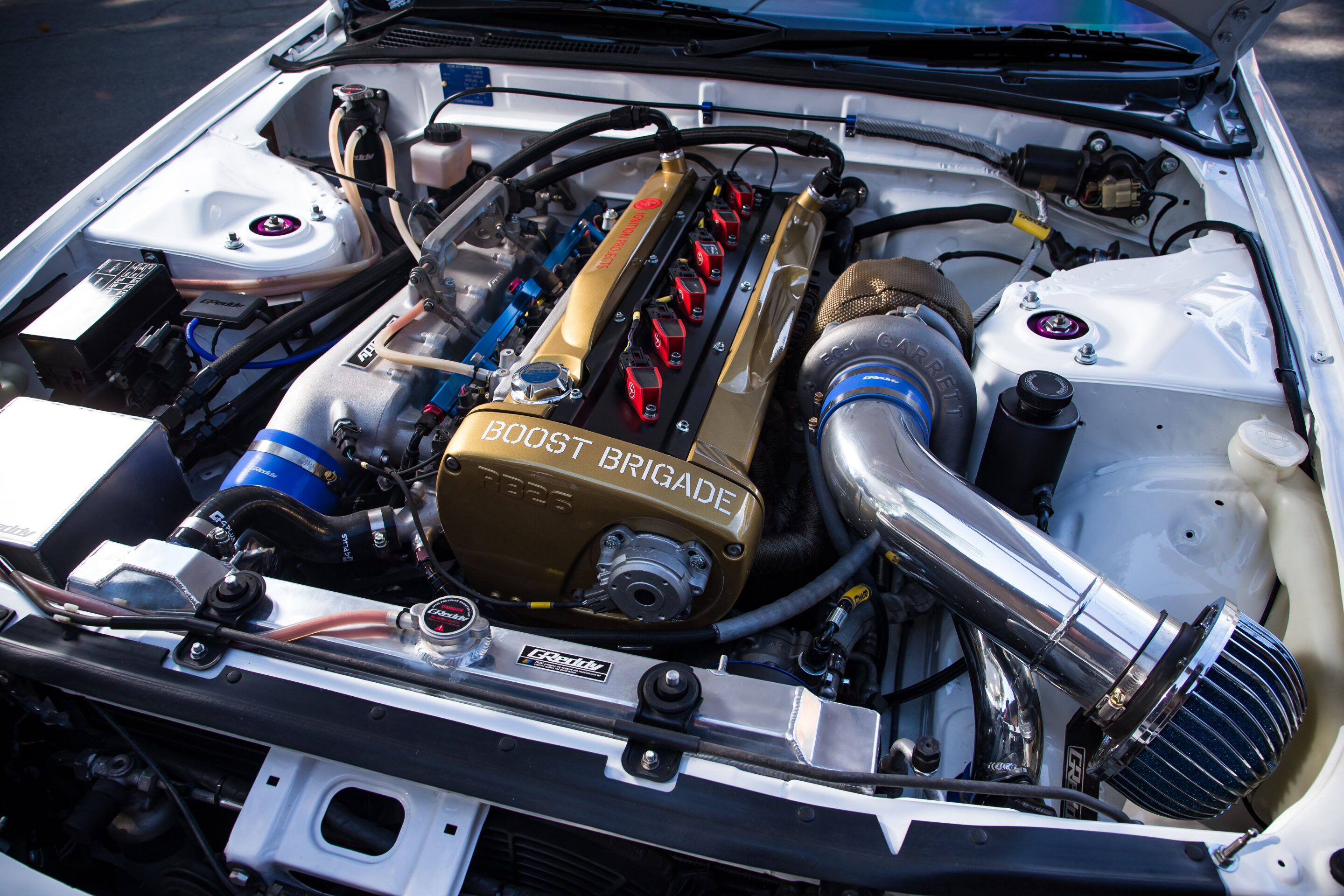 そう、RB26DETTに換装されたベンの美しいR32スカイラインセダンは、2016年のSEMAでGReddyブースの顔として展示されたのだ。もちろん、生きるショーケースとして数々のGReddyパーツも装着され、全米の注目を集めた事は言うまでもない。