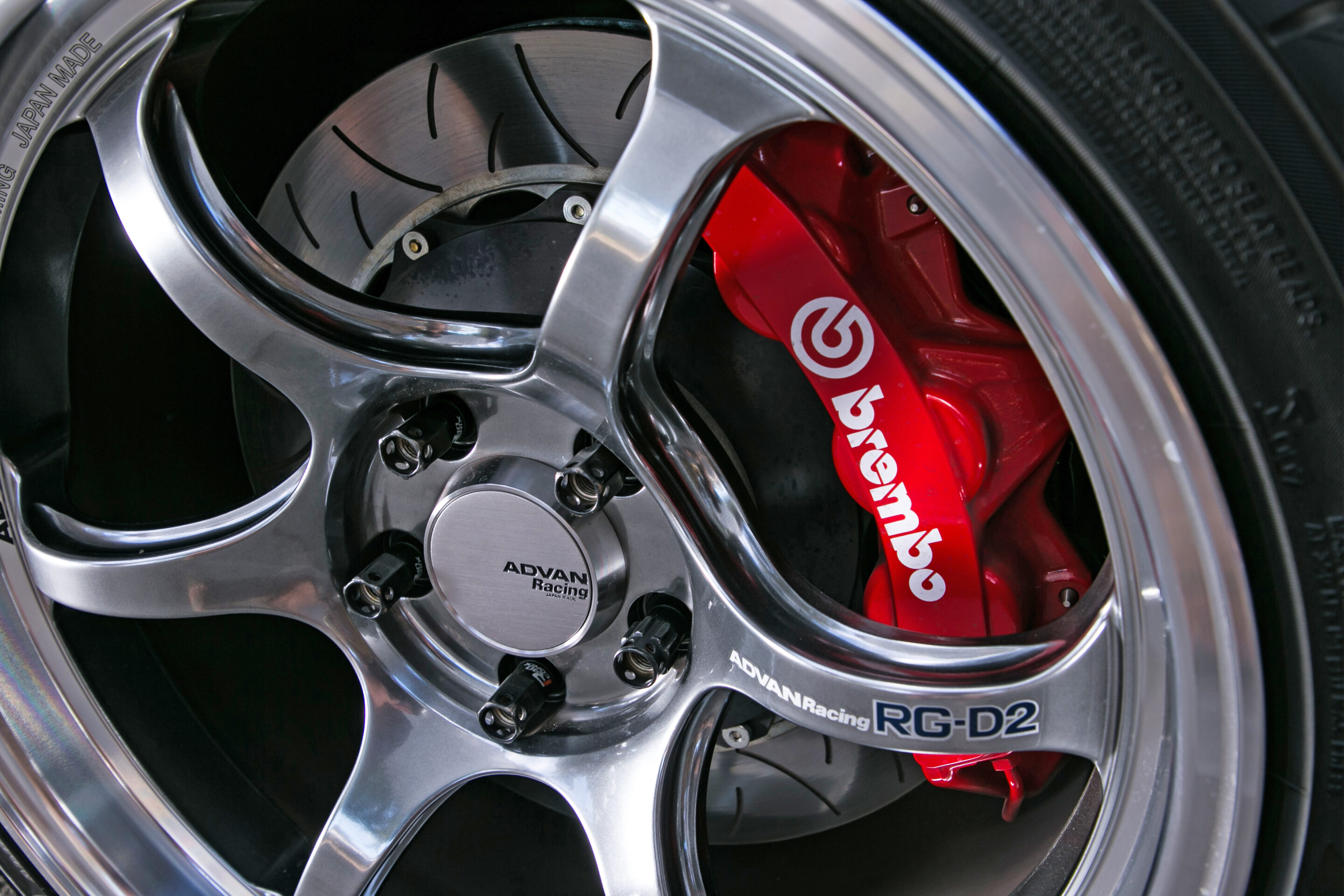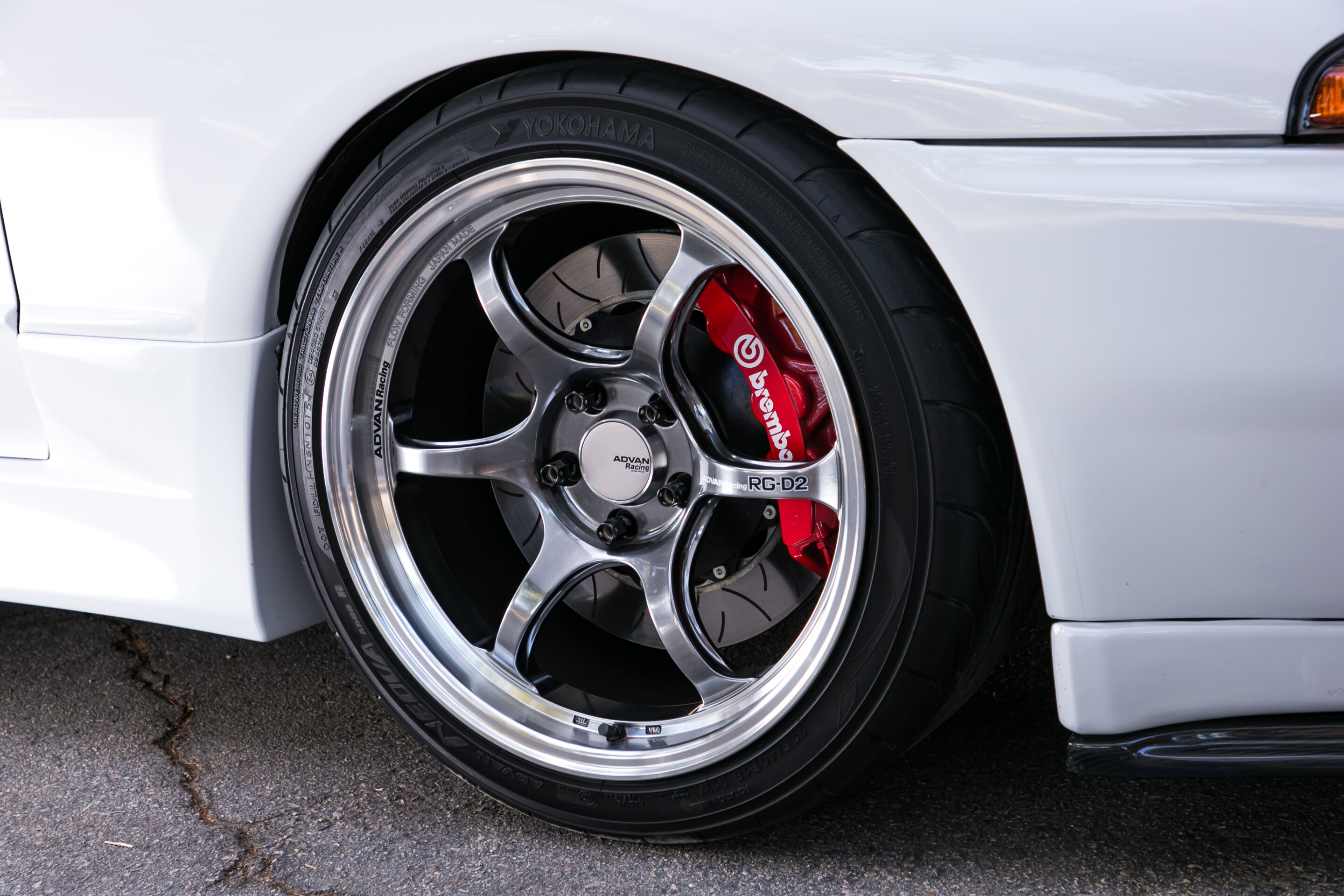タイヤ&ホイールはアドバンレーシングRG-D2とアドバンネオバAD08Rの組み合わせ。リヤのサブフレームはS15シルビアから移植されている。
