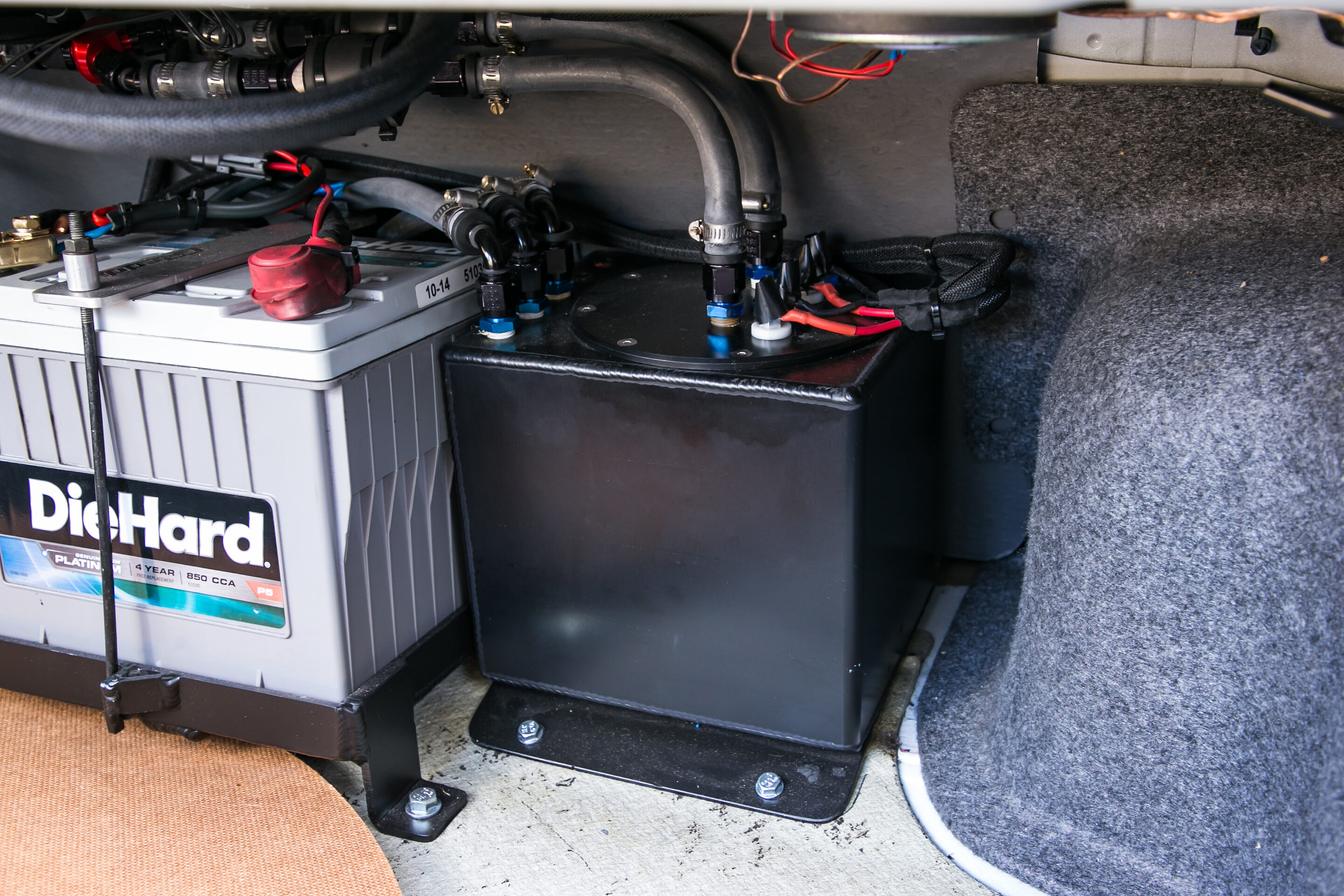 燃料系は、オリジナルのフレックスフューエルシステムを導入することでエタノール系燃料も使用可能とし、デッチワークスの大容量インジェクターなどを採用。制御にはハルテックのエリート2500を使用している。φ3.5インチのダウンパイプとエキゾーストパイプは、オーナーのベンが自らファブリケートした。