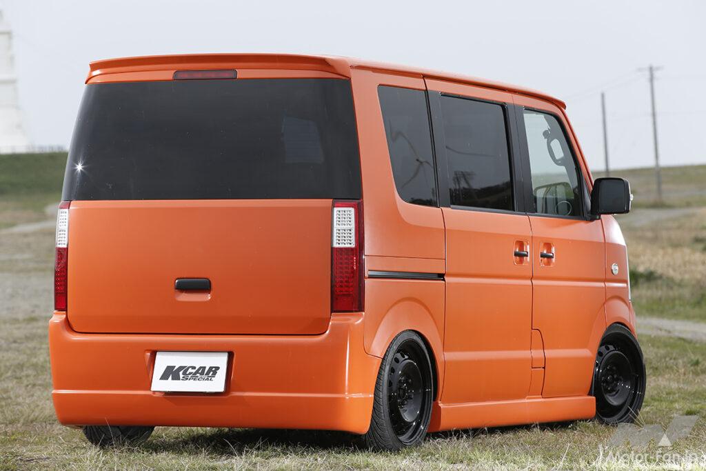 エブリイのドレスアップの可能性を模索するかのように、これまで様々なスタイルを楽しんできたオーナー。前仕様では旧車テイストなノリでイジっていたが、今回はハイエースのイメージで作られたバブリーのエアロを纏い、イメージを大幅に一新した。フロントはタイプ1よりもスポーティ色を強めた、バブリータイプRをチョイス。同社のバッドフェイスボンネットも装着し、威圧的な顔つきに仕上げて以前の面影を消し去った。
