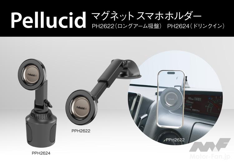 『ロングアーム吸盤(PH2622)』は、ダッシュボードに強力な真空吸盤+吸着ゲルで取り付けられるもの。ベース部の角度調整に加え、前後に伸縮するロングアームによりユーザー好みの最適なポジションにセットができる。視界を妨げにくいローポジション設置対応や、水洗いによる吸着力復活など使い勝手にも優れる。