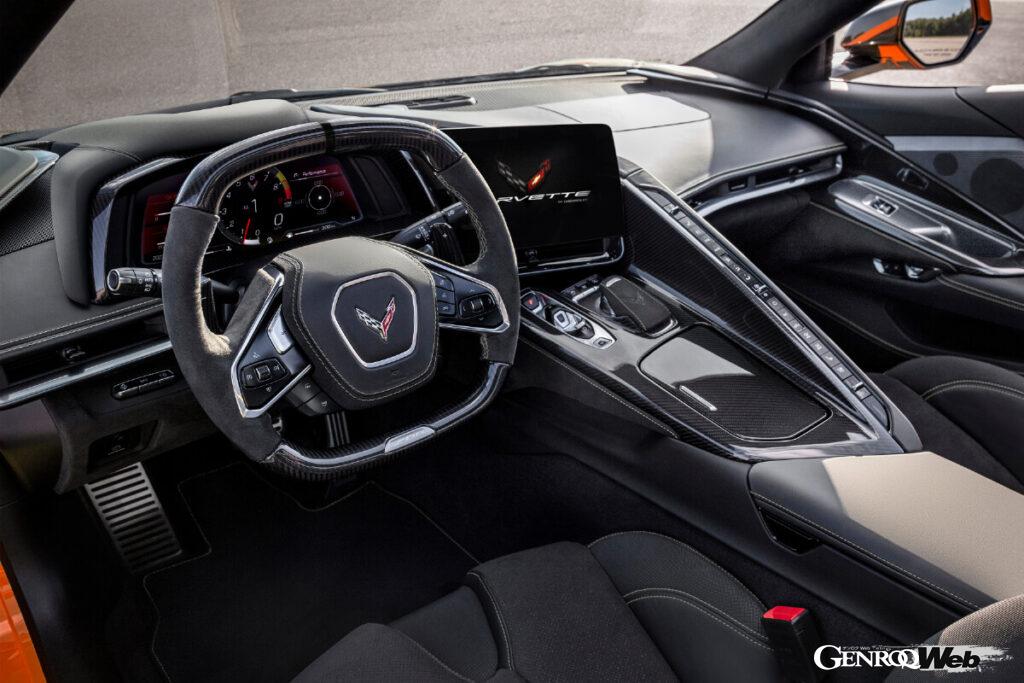 一方、Z06に搭載される5.5リッターエンジンはLT2型とは異なる系譜を歩むレーシングエンジンのLT6型である。クランクシャフトはフラットプレーン、エンジンヘッドはDOHCとなっており澄んだ音ともに646PSものパワーを8550rpmの高回転で発揮する。