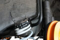 派手なのは好きじゃない。だから理想は“シンプルだけどカッコいい”。「純正のままでも十分カッコいいと思うので、あえてフロントバンパーは変えずに。その分、足まわりにはこだわってます」。車高調やリアアクスルなど足まわりを構成するパーツはジェーライン製を選択。加えて、干渉していたインナーは切り上げ。さらにドライブシャフトのバンザイを解消するためロアアームに加工を施しただけでなく、より安全に走り続けるため約2センチほどのエンジン上げまで施す。求めたのは落ち幅と乗り心地の両立だ。