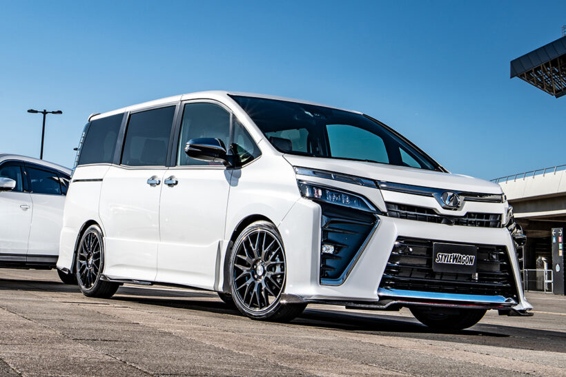 アイテム(カスタム) 「はじめてのカスタムにも最適な80系ヴォクシー用フラップエアロ」専売モデルのカーボンタイプも【写真・11枚目】 フロントフラップスポイラー 純正バンパーラインに沿って抑揚を効かせたスポーツフラップ。カーボンとガンメタに限り、赤ラインステッカー付きも選べる。 サイドフラップスポイラー サイドセクションはなんと末端部のみ。ドア追加型のため踏みつける心配なく乗り降りできる。もちろんリアルカーボンもあり。 フロントハーフスポイラー サイドステップ リアハーフスポイラー この画像の記事を読む