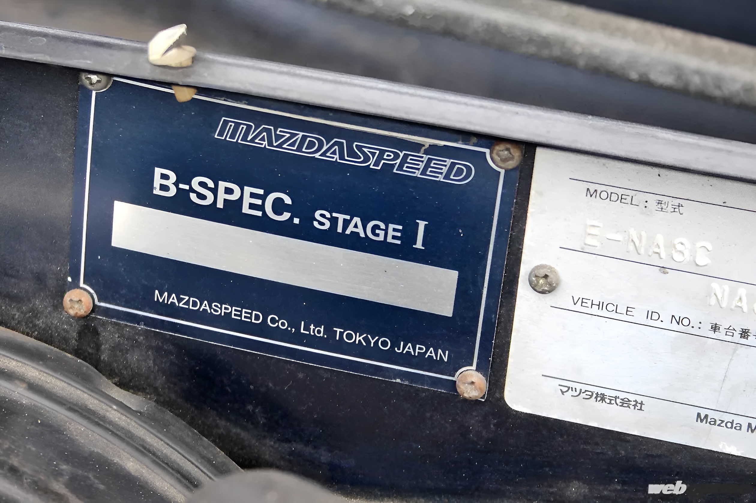 バルクヘッドに追加されたマツダスピードのプレート。なぜかシリアルナンバーが見当たらないが、その理由は不明。