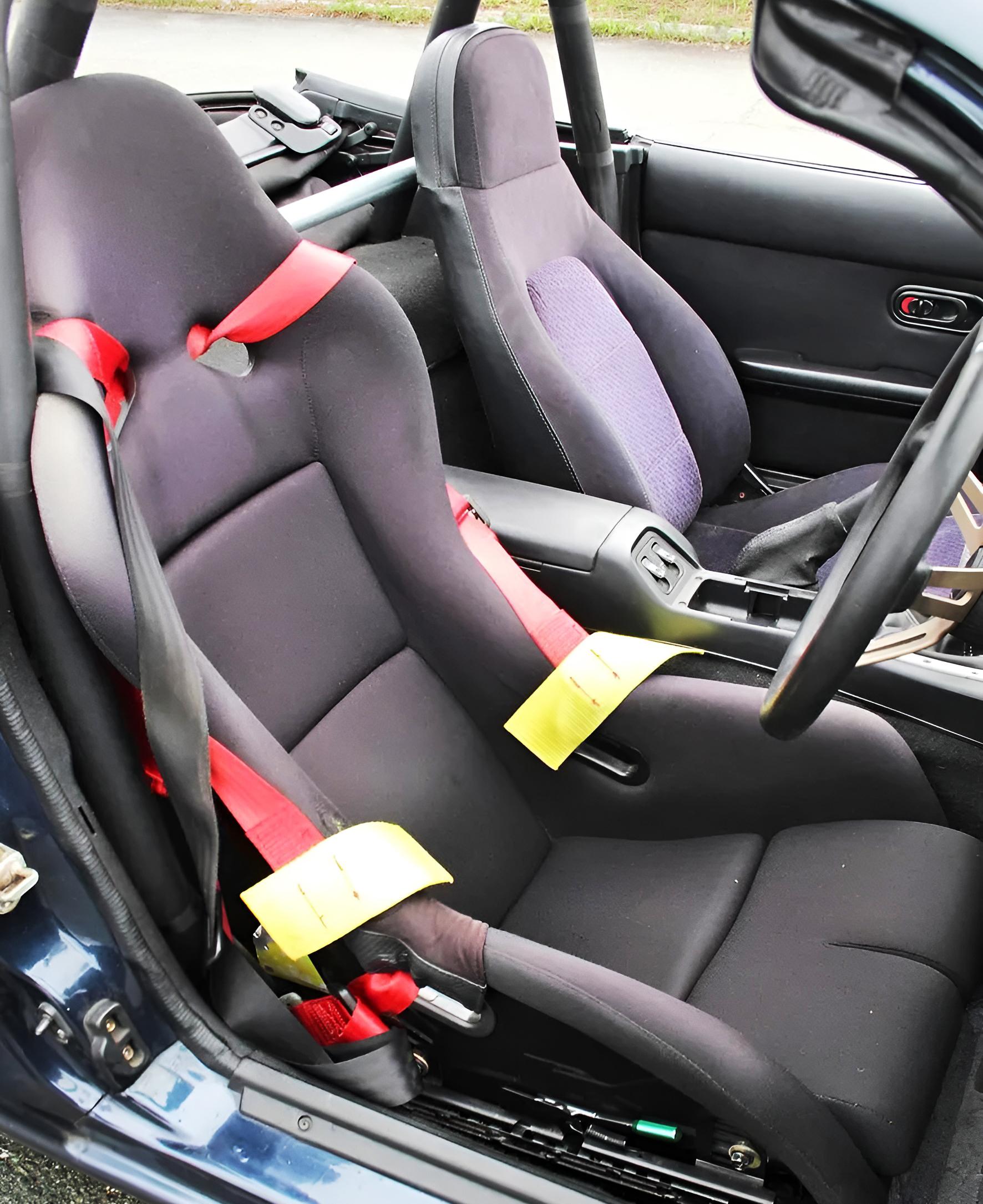 オーナーはショートサーキットを中心に走りを楽しんでいて、トップクラスのタイムを記録しているとか。バケットシートやレーシングハーネスはそのための装備だ。