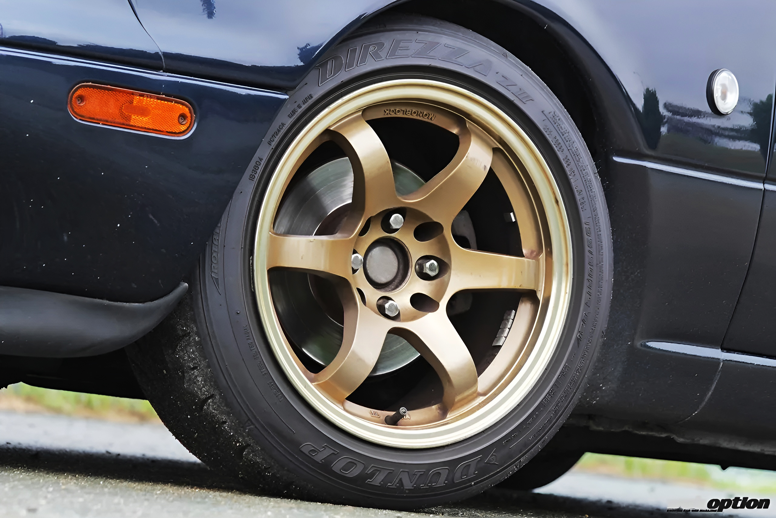 ホイール&タイヤは、スタンスマジック#080(FR8J×15+25)にディレッツァZIII(FR195/50-15)の組み合わせ。サスペンションはオーリンズダンパー+MAQsスプリングというセットアップで、アッパー加工によってストロークを確保。LSDはマツダスピード製を奢る。
