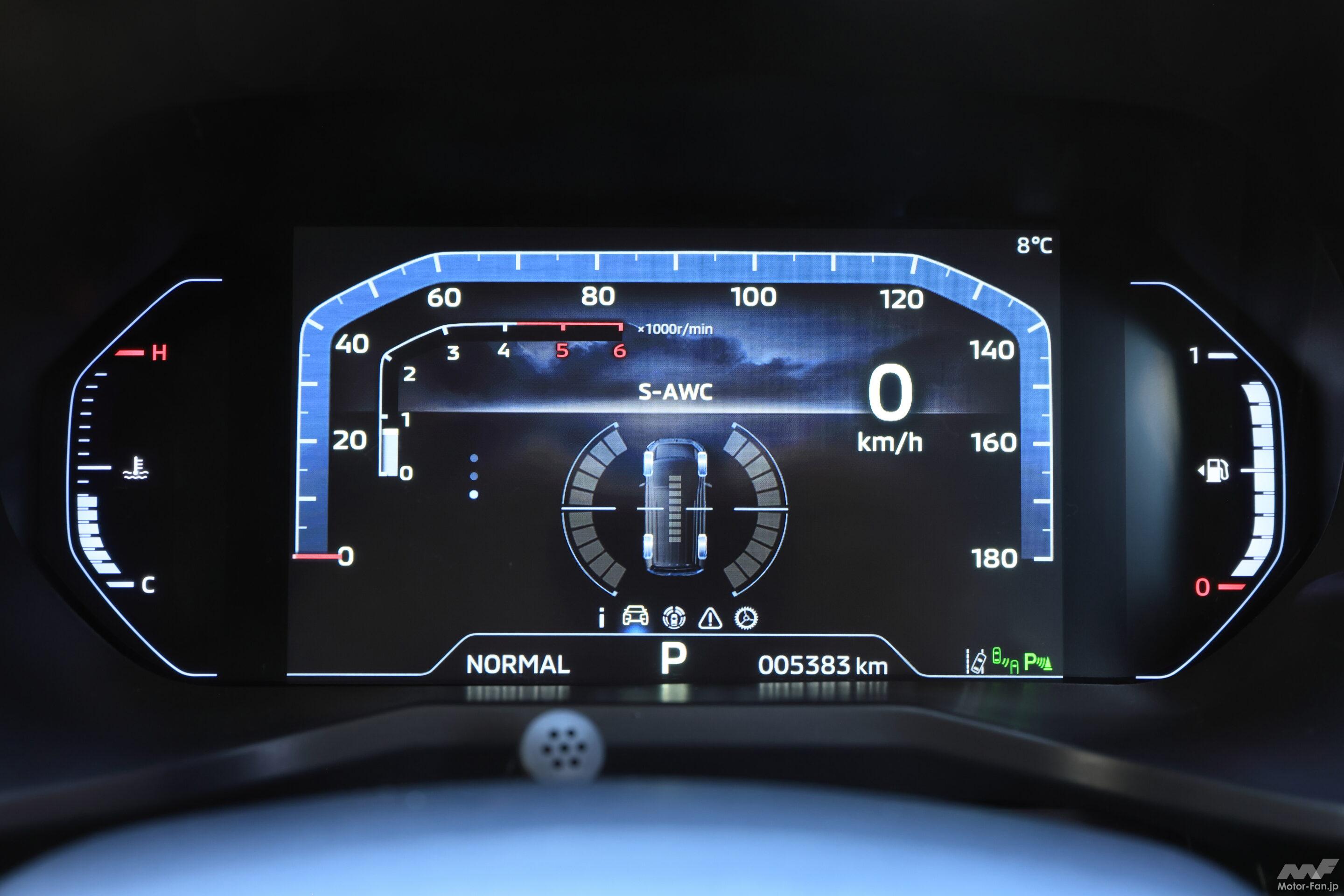 この8インチフル液晶メーターは、今回のマイナーチェンジにおいて採用された新デバイス。S-AWCによる制御をグラフィックとして表示する機能も持ち、制御系の進化を実感できる。2.2Lディーゼルと8速ATを組み合わせた基本的なハードウェアはキャリーオーバーだが、ディテールアップに抜かりはない。