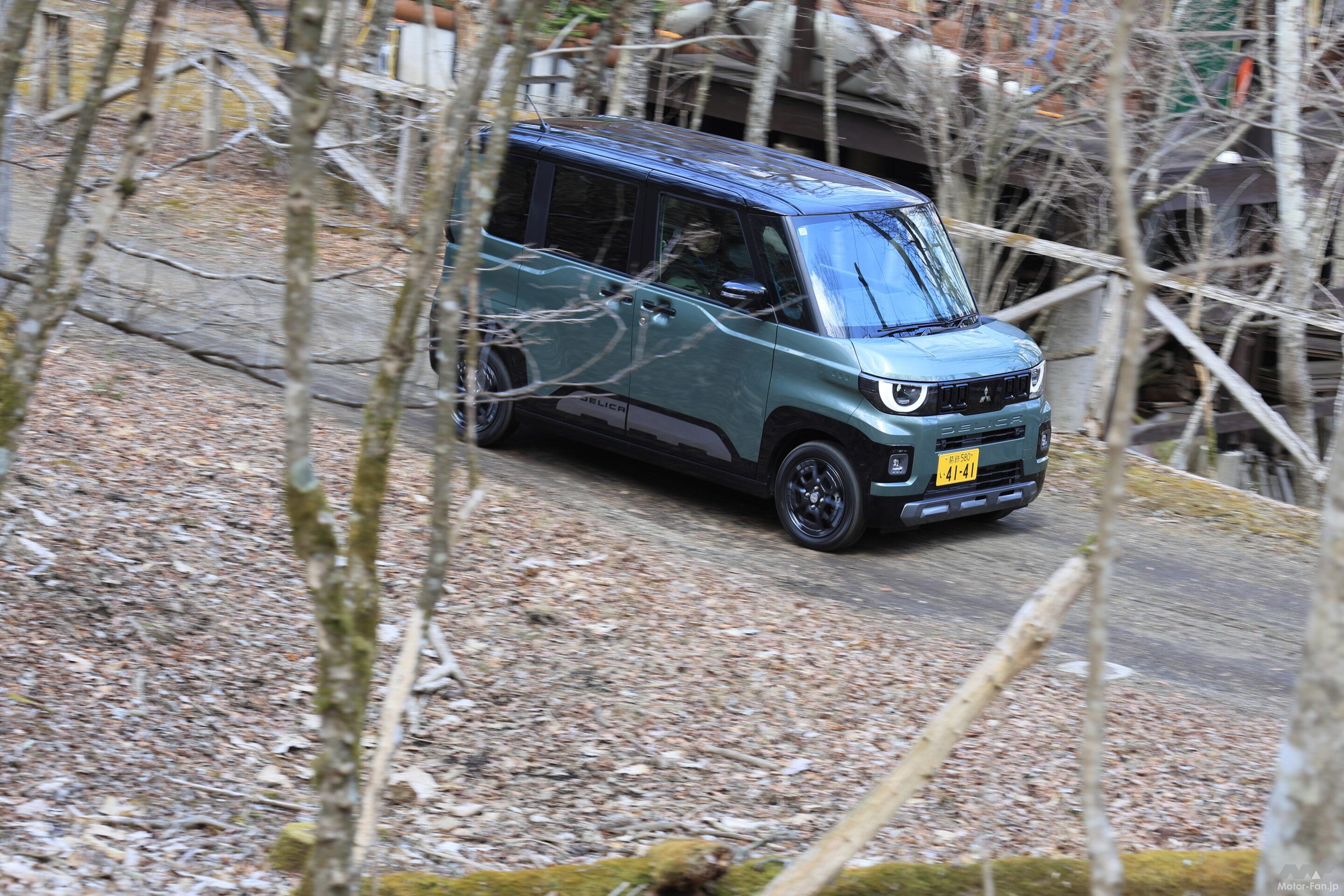 ちなみに、舗装のワインディングにおいてパワー・モードを使って走ってみると、エンジンとCVTのレスポンスを高めながら、絶妙な電子制御によって滑らかな走りとなるように味付けられていると感じた。背の高い軽スーパーハイトワゴンで、なおかつ専用サスペンションでストロークを伸ばしているネガティブな印象は、まったく感じられなかった。