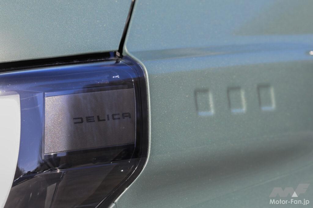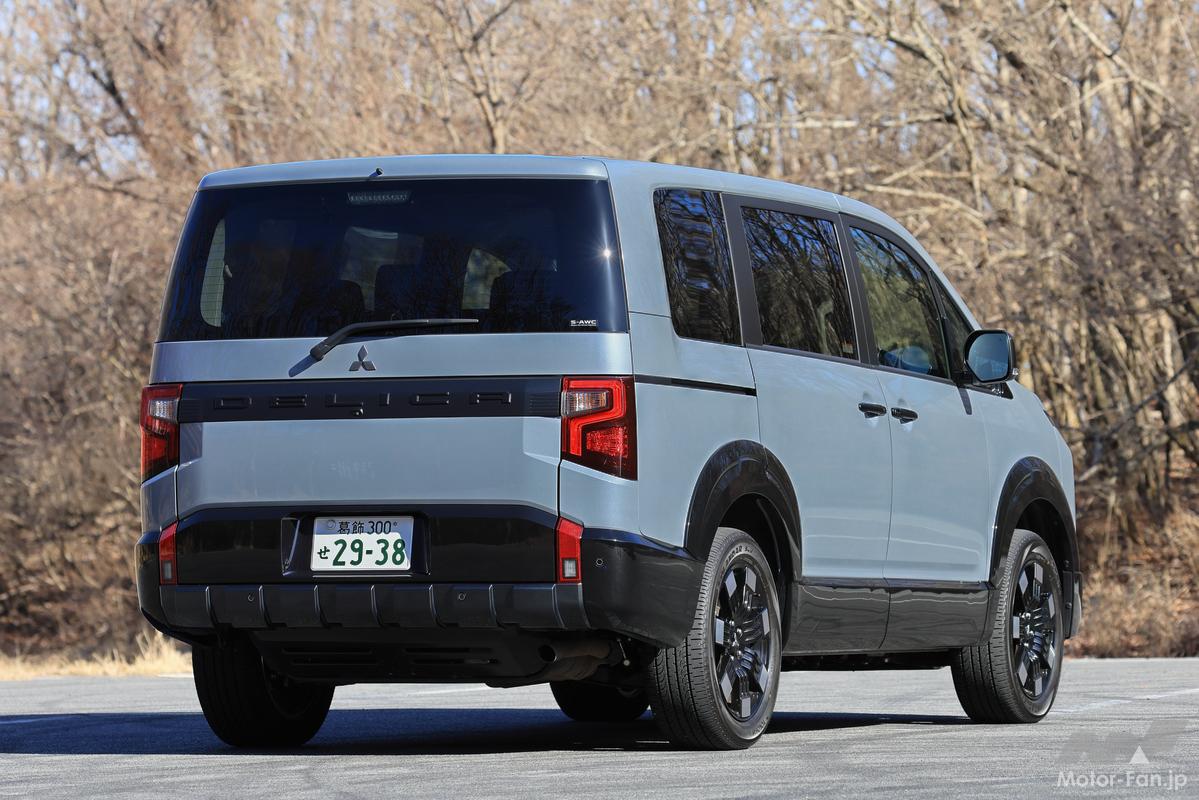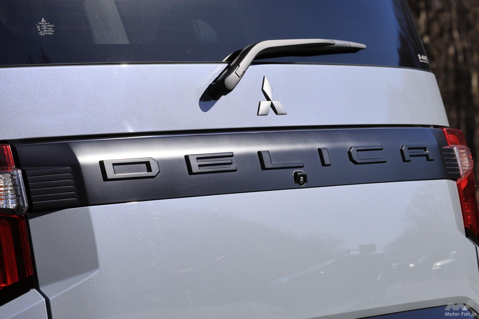 あらためて外観を眺めれば、ブラック系にリフレッシュされたフロントマスク、ワイド感を強調する新デザインのテールゲートなどが、デリカの伝統と進化を具現化している。とくに「DELICA」のロゴが目立つようになった後ろ姿には、新たにS-AWCやドライブモードセレクターを得たことで走りを磨いたデリカの自信が感じられる。