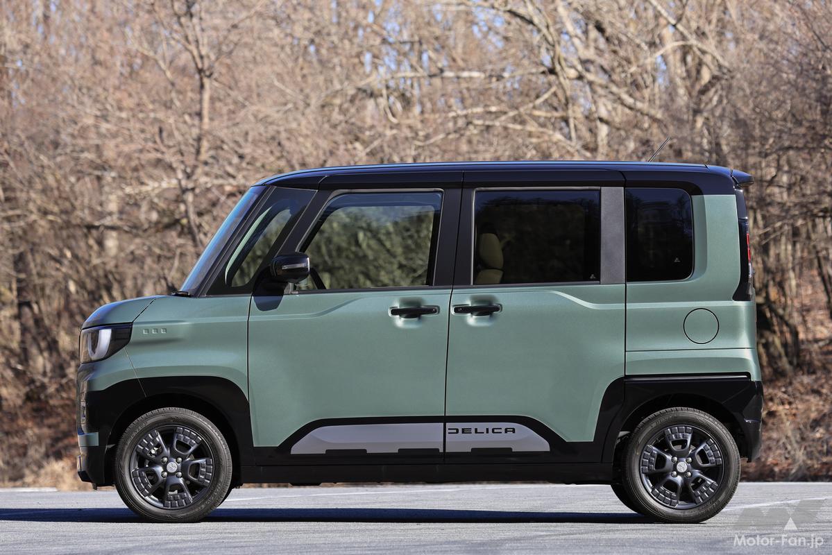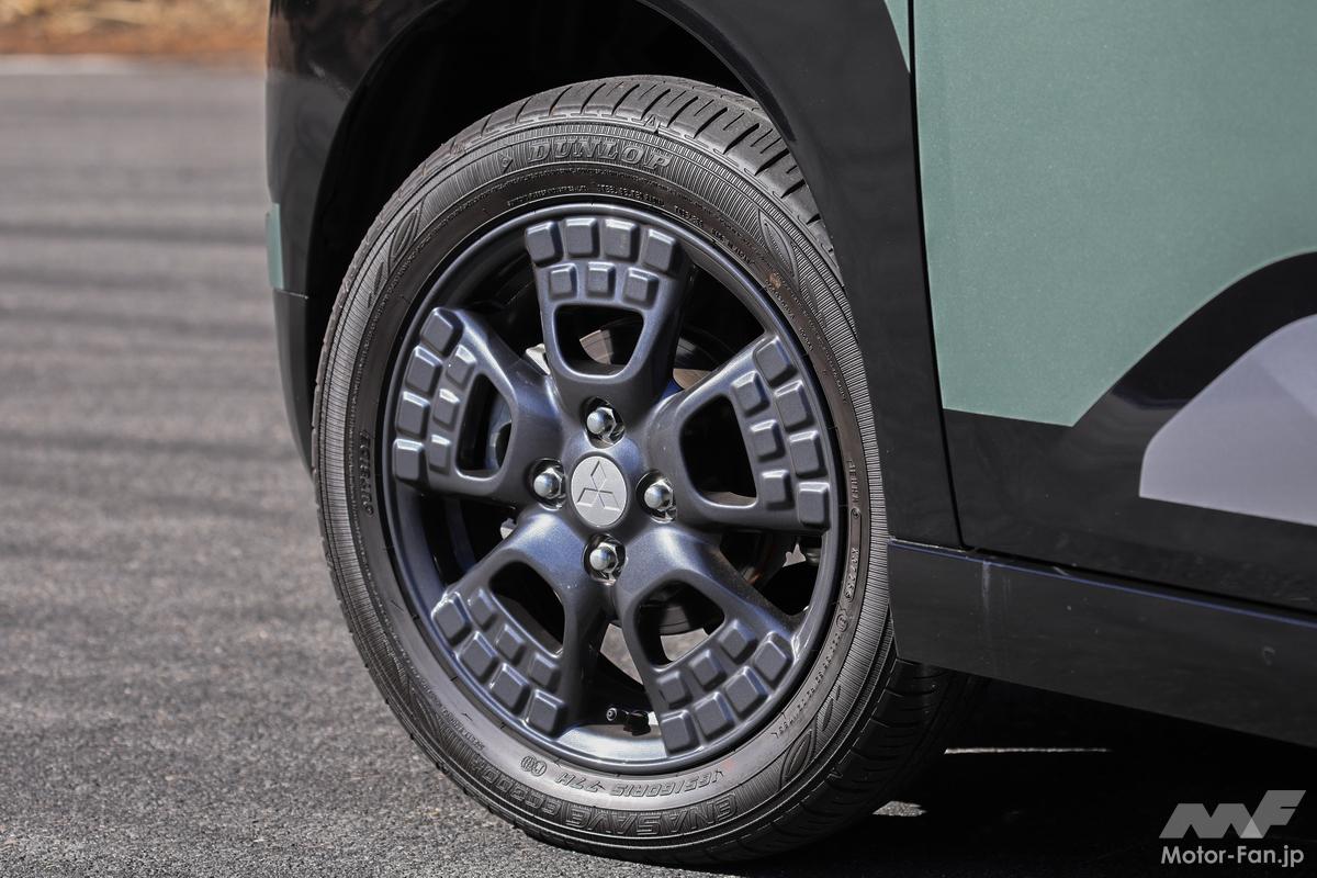 完全なるフルモデルチェンジでありながら、初代デリカミニからルックスのイメージはしっかりと引き継いでいる新型デリカミニ。新しくなっても4WD車には大径タイヤ&専用サスペンションを与えることで悪路走破性を高めているという伝統は守っている。加えて、兄弟車のeKスペースとは異なる形状のフロントフェンダーやボンネットなど、アウターパネルについても専用デザインとなっている点も進化ポイントだ。