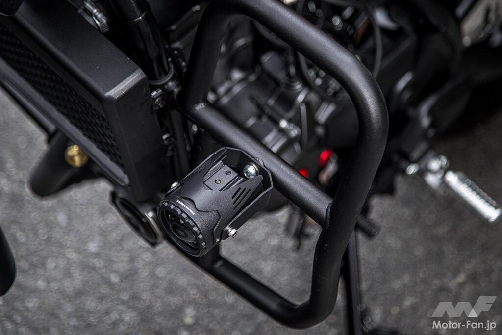 まず目を引くのは、車体のシルエットを大きく変える「レッグバンパーキット」。単なるガードパーツとしての機能を超え、そこにLEDフォグランプを低く構えてマウントすることで、CLが持つアドベンチャーの血統を視覚的に強調している。