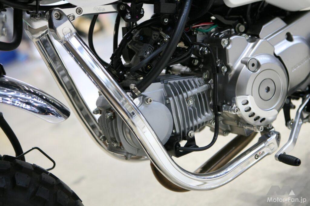 まず目に入るのが、オレンジのラインやシート形状といったビジュアルの要素。往年のホンダモンキーZ50J を思わせるディテールで一気に“それっぽさ”を演出してくる。とはいえ、ただ似せただけでは終わらないのがGクラフト流。見た目はクラシックでも、実際の乗り味はしっかり現代基準だ。