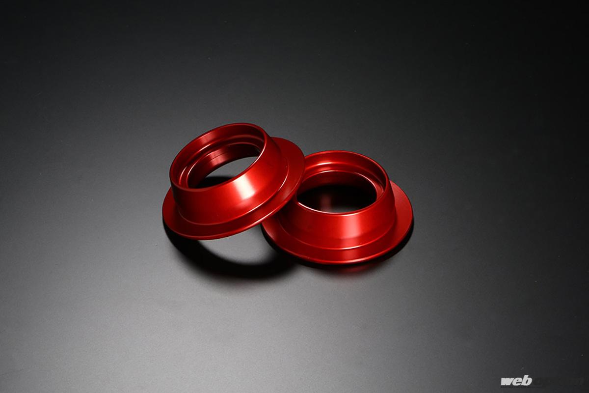 バネ定数がリニアに立ち上がる直巻きスプリングのインストールを可能にすることで、スピードレンジを問わずソリッドなドライブフィールを演出することが可能。対応ID(スプリング内径)もアフターでメジャーなID65なので、まさに選び放題だ。