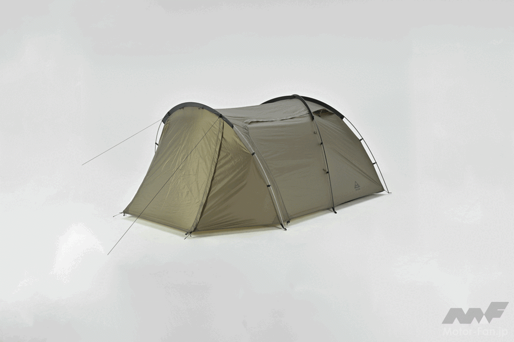 デイトナは、人気モデルの設計思想を受け継いだエントリーテント「MAEHIRO DOME E(マエヒロドーム イー)」を発売する。キャンプツーリング初心者の“最初の一張り”を想定し、快適性と価格のバランスを追求したモデルだ。最大の特徴は、広々とした前室と後室を備えた2ルーム構造。前室はリビングや荷物置きとして活用でき、後室はブーツや手荷物の収納スペースとして機能する。ソロでも閉塞感のない空間を確保し、自宅のような居住性を実現する設計となる。装備面では、キャノピー仕様の入口やベンチレーター、メッシュ切替可能なインナーなど、快適なキャンプを支える機能を充実。3方向から出入りできる構造や操作性の高い開閉機構も備え、使い勝手を高めている。重量は約4.2kgで収納性にも配慮しつつ、価格は2万8820円に設定。クラウドファンディングでは先行価格も用意される。機能を削らず手に取りやすい価格帯を実現した本モデルは、バイクキャンプ入門者にとって有力な選択肢となる。