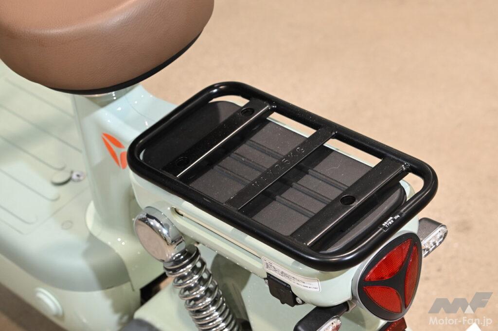 スチール製で頑丈なリヤキャリアを装備。フックをかけたり、使い勝手の良い形状となっている。