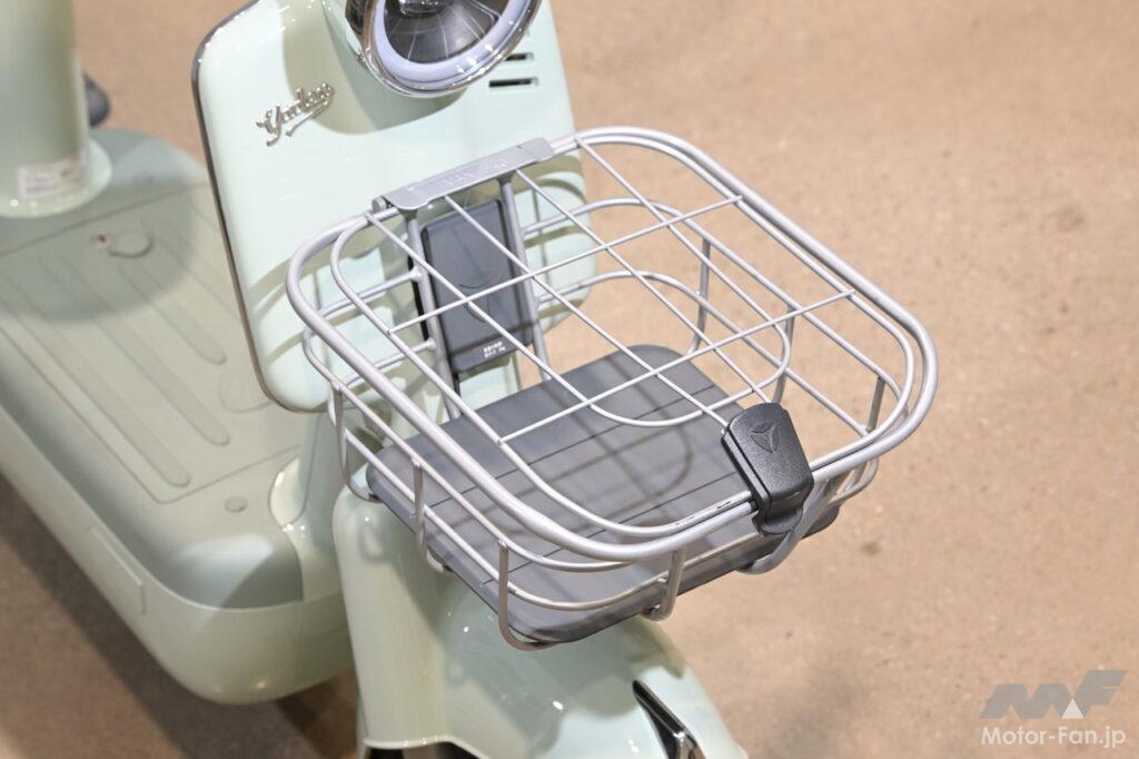 フロントには7リットル容量のバスケットを装備。耐荷重は5kgで、内容物が飛び出さないよう蓋が設けられている。
