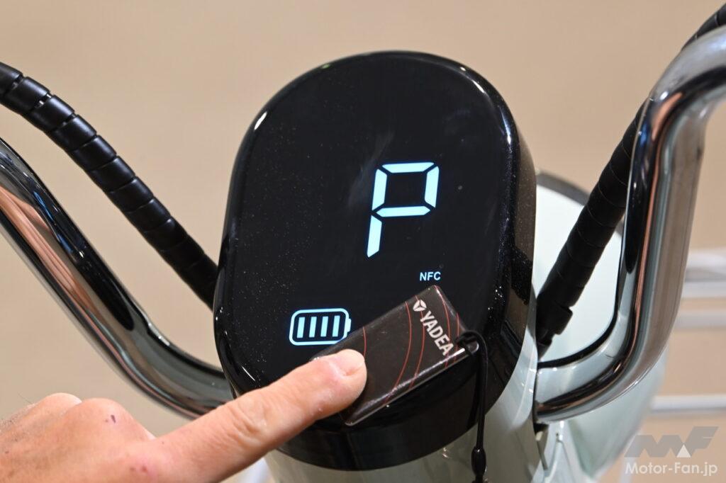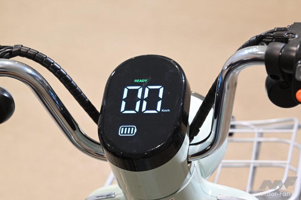 メーターには速度表示のほか、バッテリーの残量計も備わる。READYという表示が出れば、いつでも発進OK。